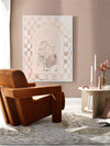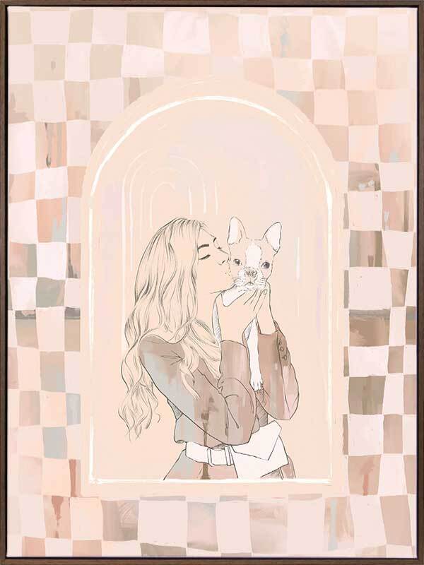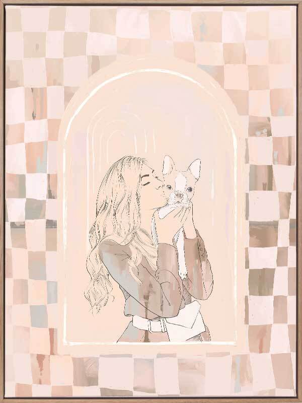 Kisses Canvas Art Print - Show your maternal love for your pet with this gorgeous piece, featuring a big, warm kiss right on that little puppy's furry cheeks. A feminine palette of soft pink and beige tones makes this the perfect subtle pop of colour for any space. A wonky checkerboard pattern in the background brings a laidback, comforting feel, with silhouette imagery in the centre to capture a perfect moment in time.
