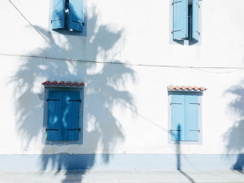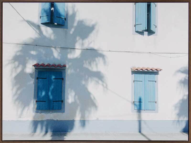 La Habana Canvas Art Print: A tropical oasis in an overseas land. A brilliant photographic work showcasing light and shadows at play against a white brick building. 2017 AUTUMN/WINTER COLLECTION: ILLUSION