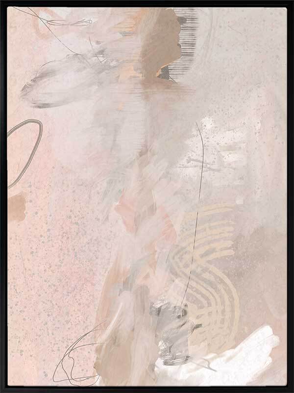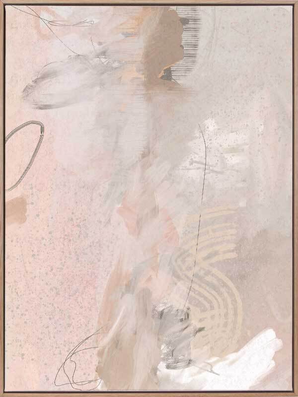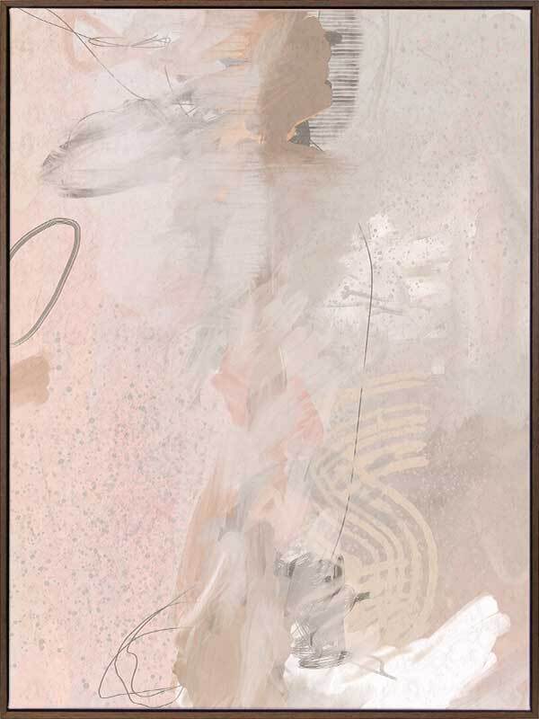 La Tranquillité II Canvas Art Print - Brighten up your space using a subtle touch with this gorgeous abstract artwork, featuring a chaotic, statement-making blend of lines, brush strokes, and dots. Palette includes soft, light pink shades, light grey, and brown.