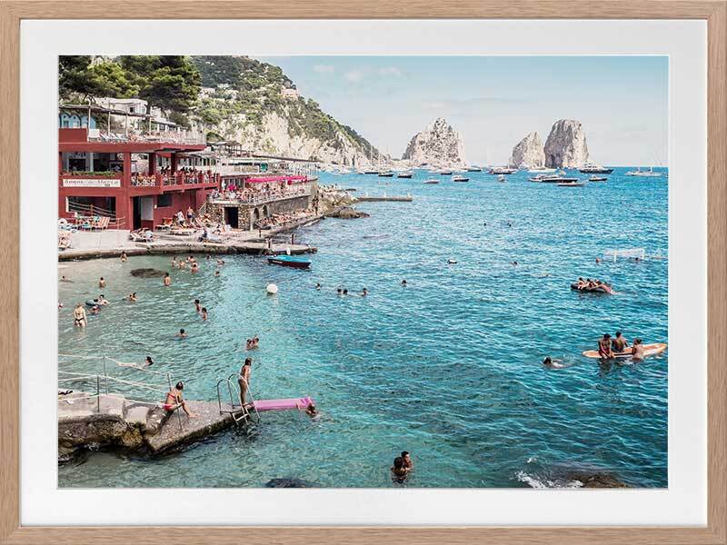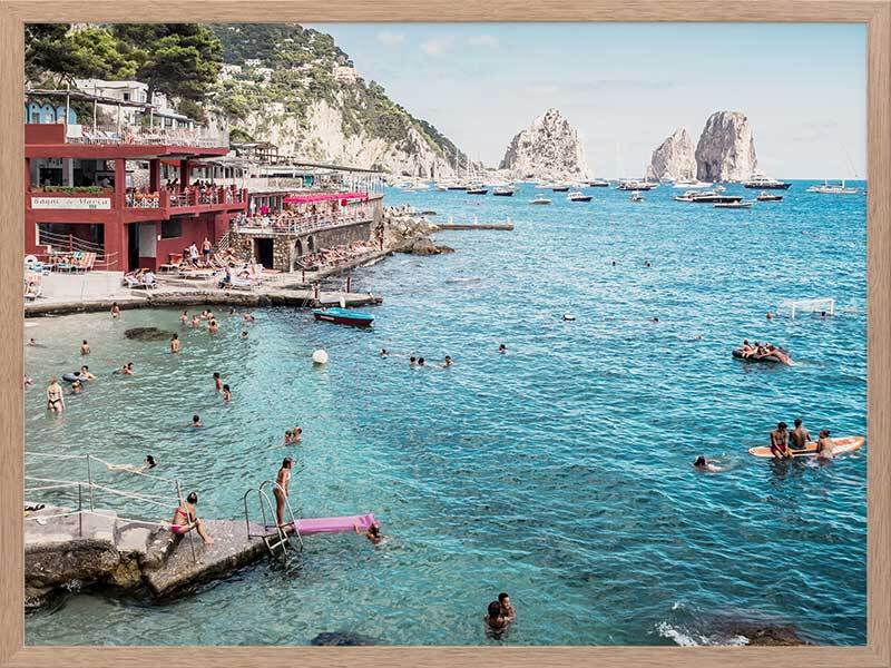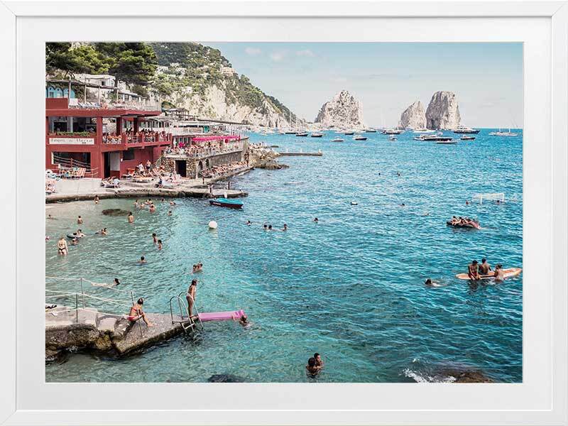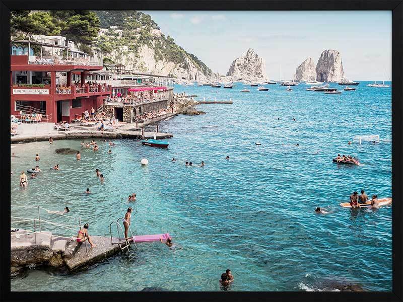 La Vita è Bella Framed Art Print - Remind yourself how beautiful life really is with this stunning photographic art print of a vintage snapshot of a coastal wonderland. A palette of blue, red, green, and neutrals gives this travel photography a sense of serenity.