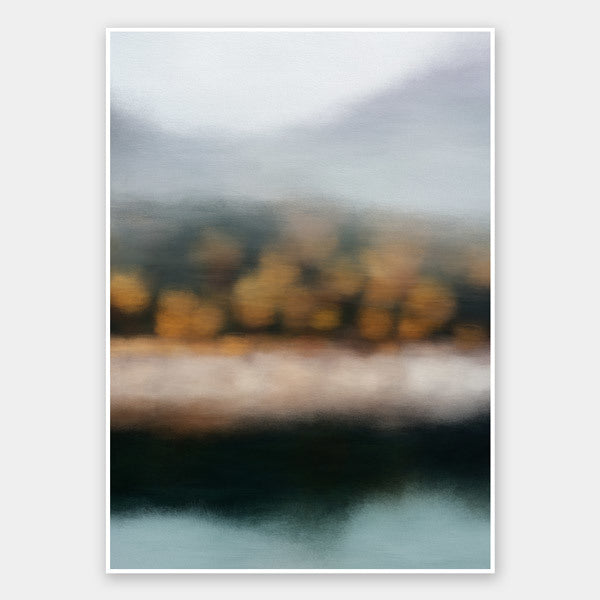Second Look Fine Art Print: A blurred landscape artwork featuring a deep, emerald forest and golden-brown grass. 2019 AUTUMN/WINTER COLLECTION: ODYSSEY