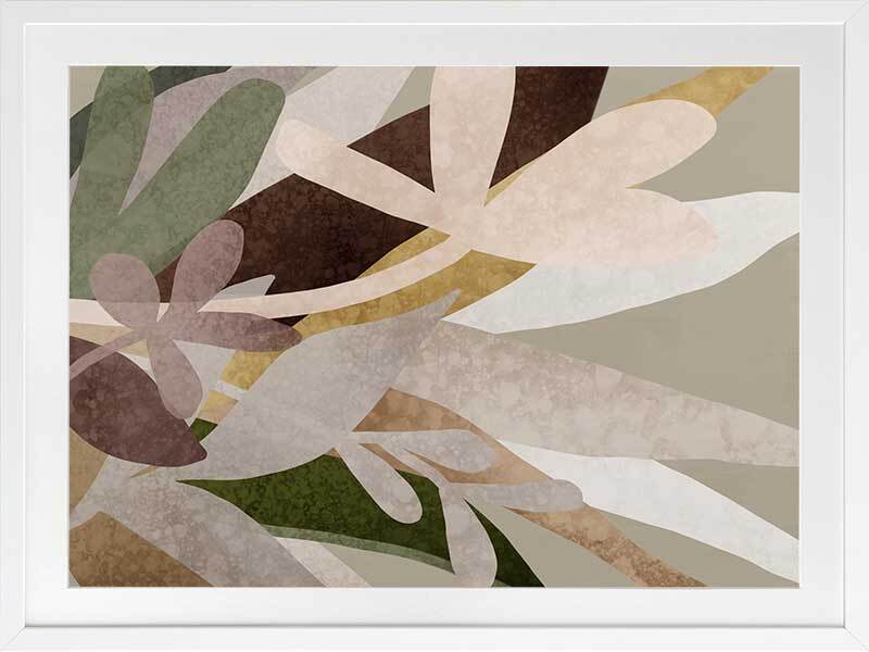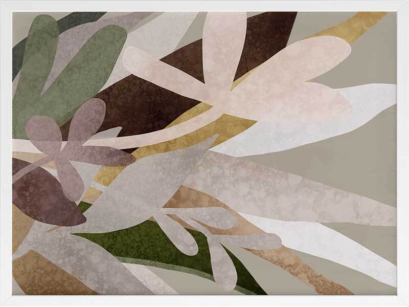 Lavendaire Framed Print: A delicate overlay of textured flowers and leaves in muted pink, beige and green tones. 2020 AUTUMN/WINTER COLLECTION: REVERIE
