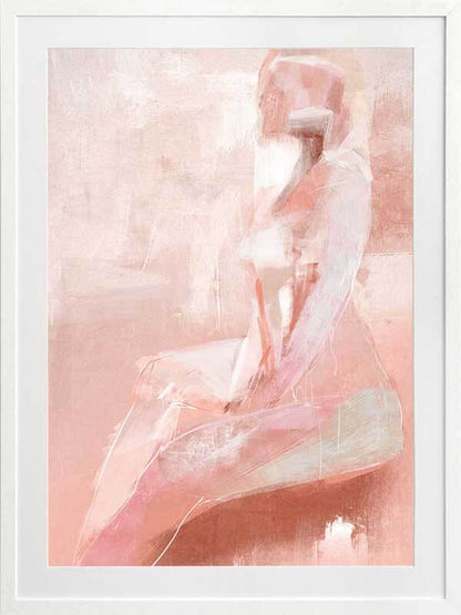 Light Framed Art Print - Soft, feminine and understated, this artwork is a gentle yet visually stunning image featuring a nude female figure in profile. The piece features rich, textured strokes and a monotone colour palette of pink, peach, blush and cream.