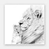 Lion Unframed Art Print - Take a glimpse into the more intimate side of this powerful creature, with a detailed sketch of a lion and its cub enjoying a gentle moment, nestled in each other's warm embrace. The black, white and grey palette brings a softened energy to this piece, making it a beautiful addition to any space.