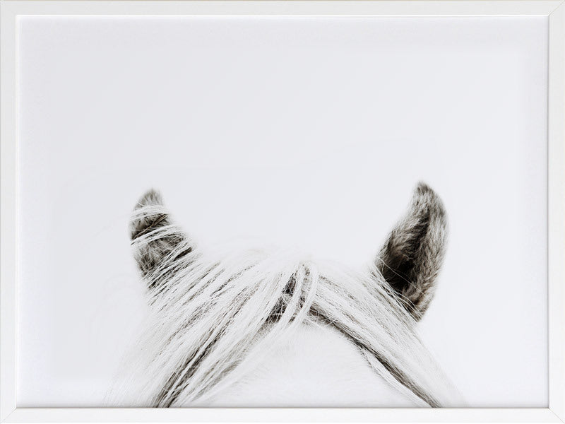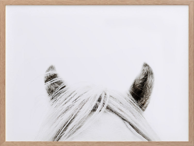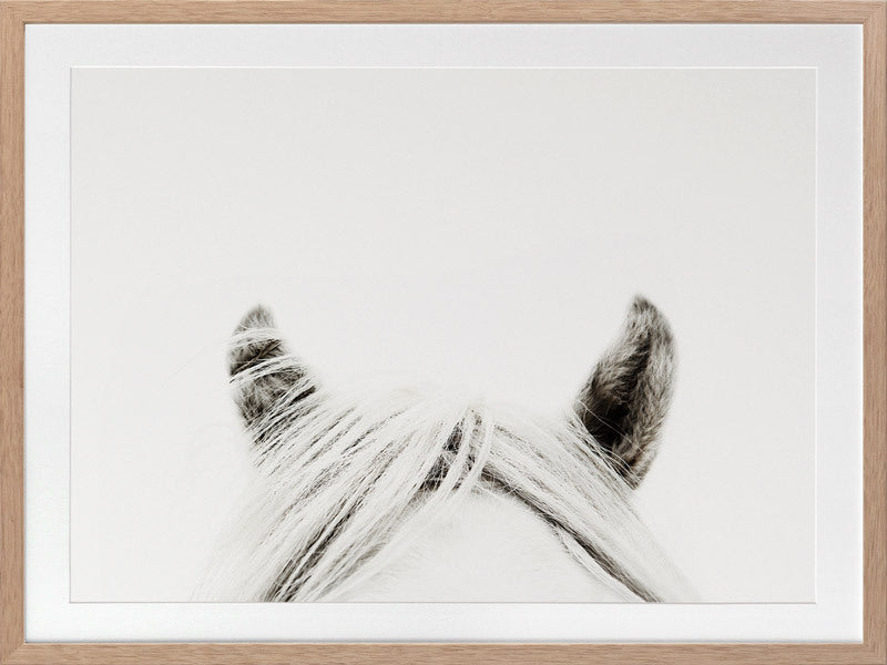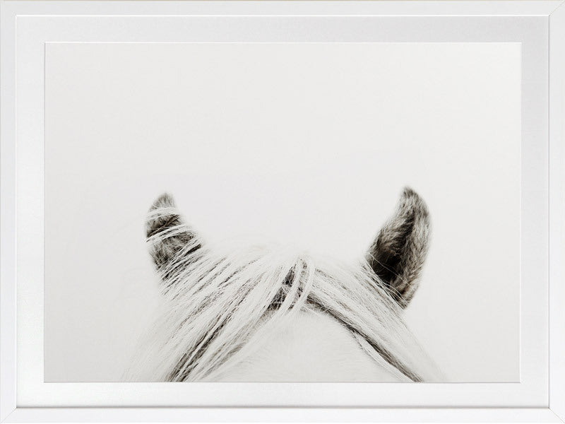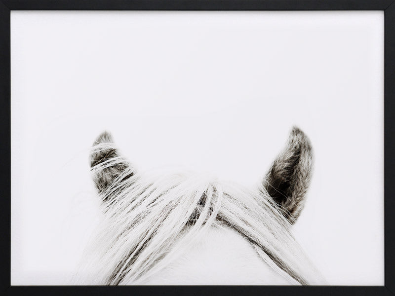 Listen Up Framed Art Print - A black and white photographic closeup of an Icelandic horse's ears. 2019 GIGJA EINARSDOTTIR COLLECTION Gigja Einarsdottir is an Icelandic photographer who specialises in capturing the beauty and energy of Icelandic horses and landscapes in her photographic work.