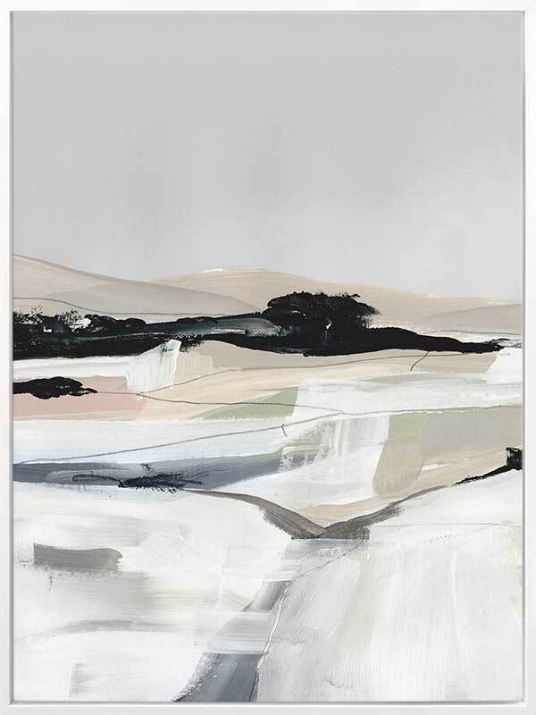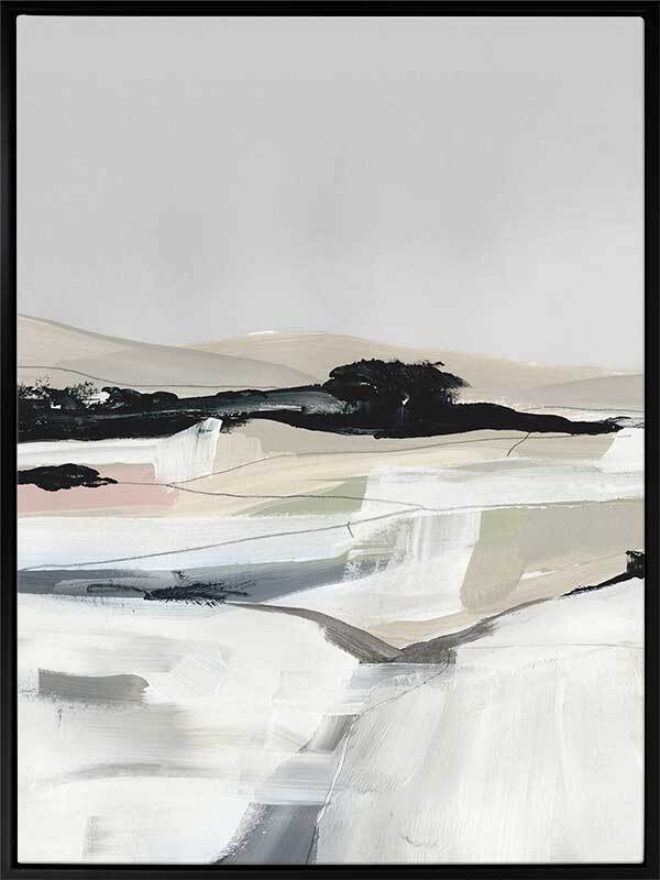 Lofty Summit I Canvas Art Print - Bring a taste of the outdoors in with this abstract landscape painting. The unique shape and colours add an eye-catching design feature to any room in your home. Featuring muted neutral shades with striking black paint strokes for contrast against the grey sky. For a complete look pair with Lofty Summit II for a cohesive look.