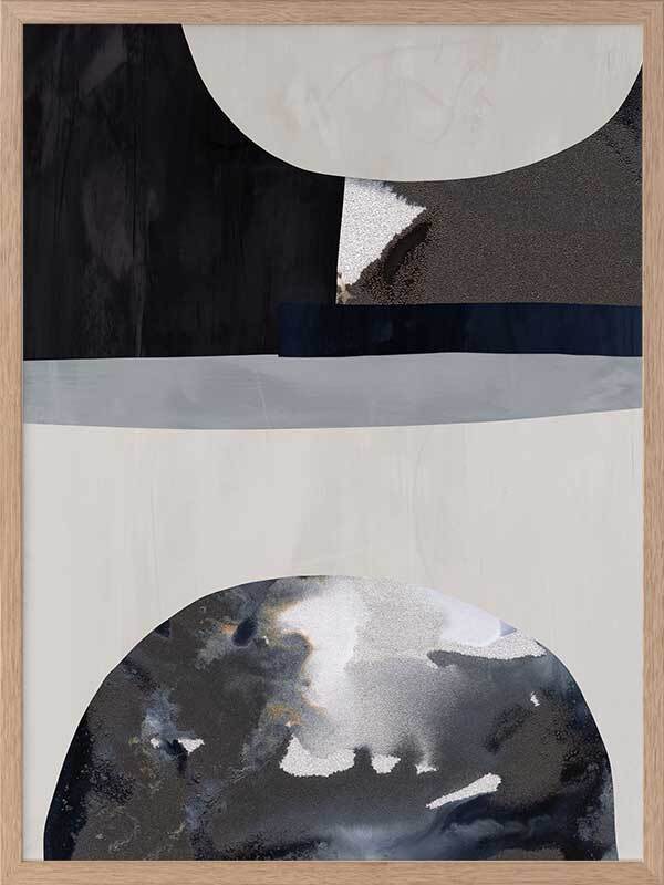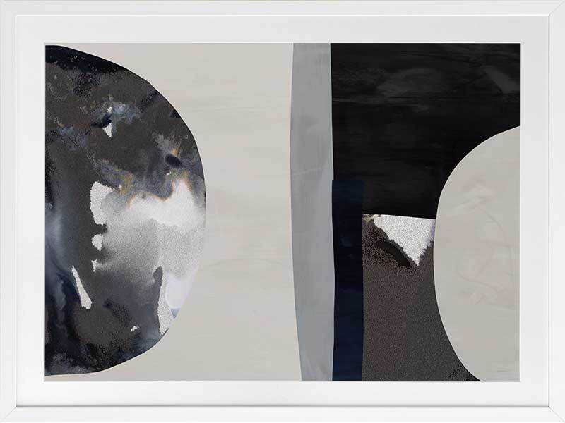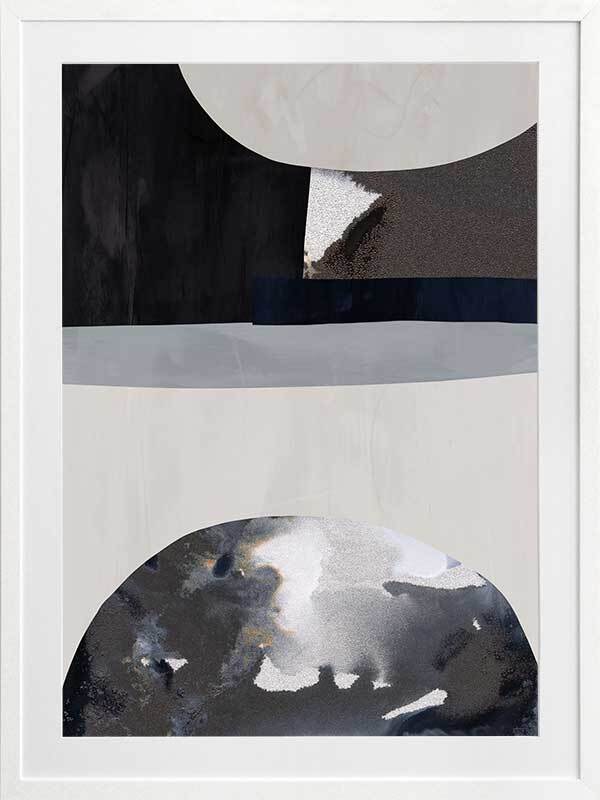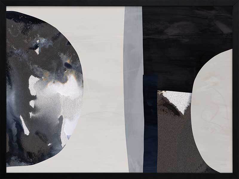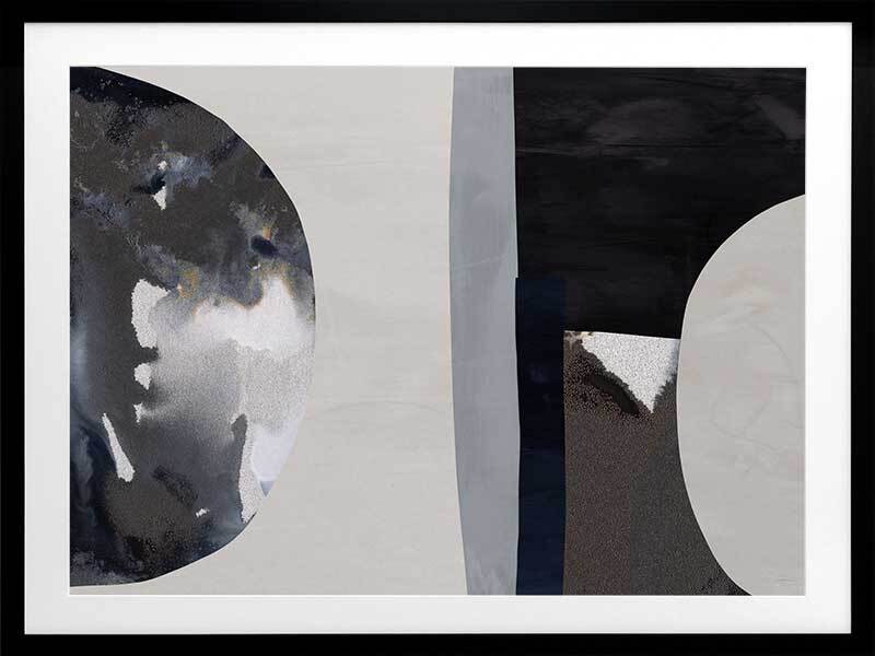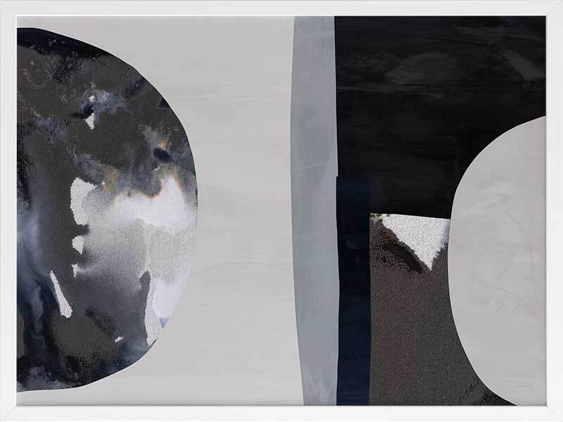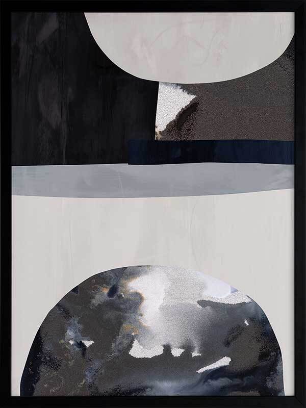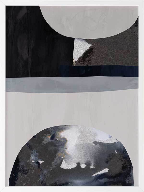 Lone Wolf II Framed Print: A subtle, yet interesting abstract piece that features marbled grey and navy elements and overlaid shapes. Pairs with Lone Wolf I. 2020 AUTUMN/WINTER COLLECTION: REVERIE