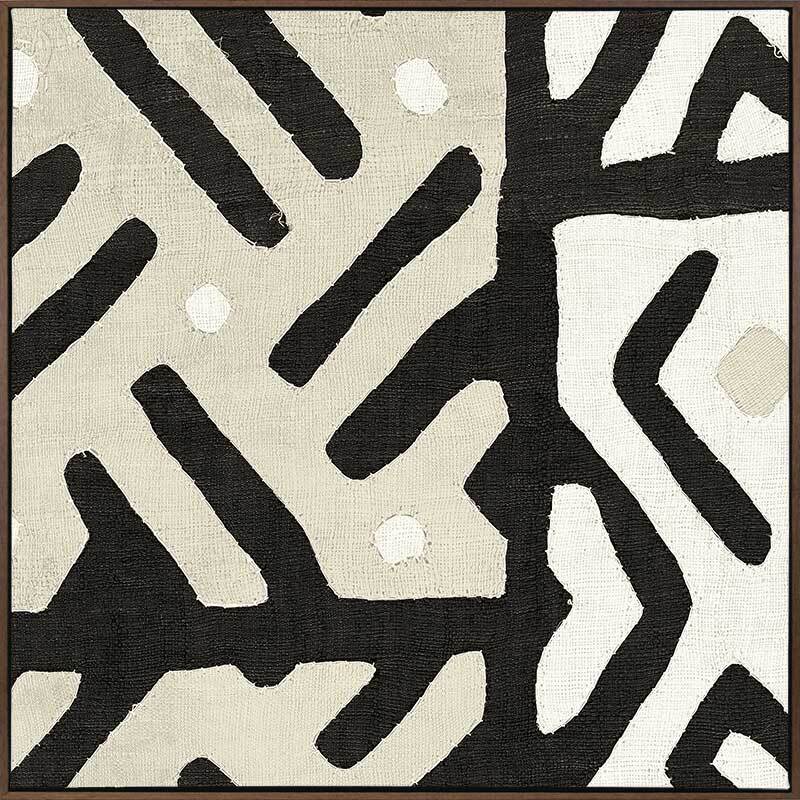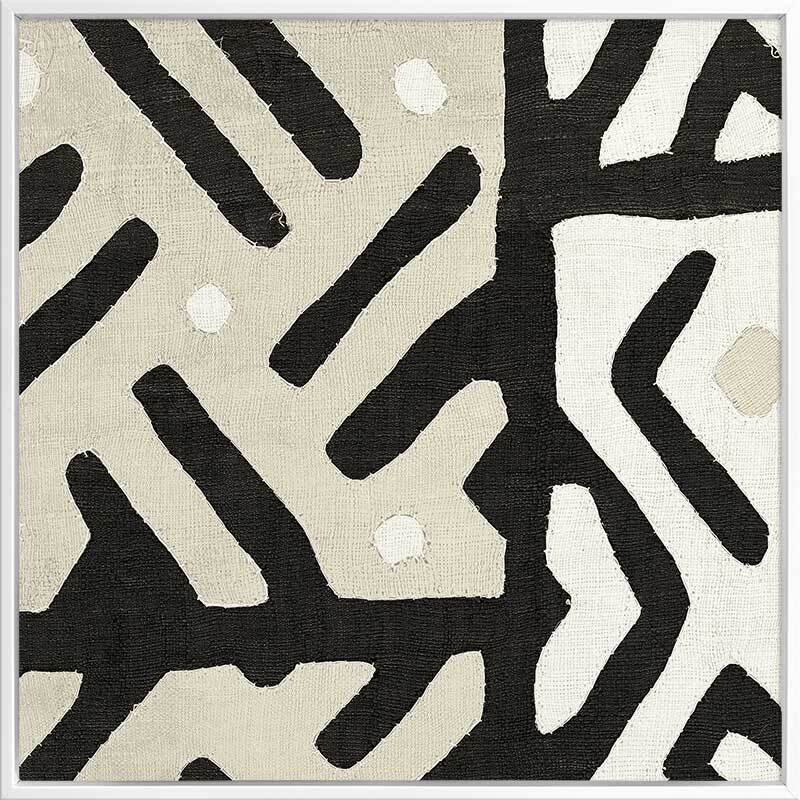 Long Island II Canvas Art Print - Reminiscent of an intricate tribal pattern, this abstract artwork features intersecting lines and angles in a carefully balanced monochromatic palette of black, cream and beige. Pairs with Long Island I.
