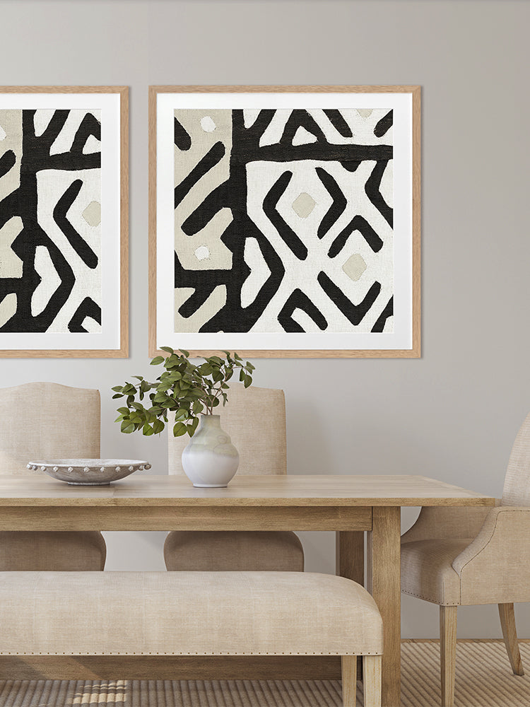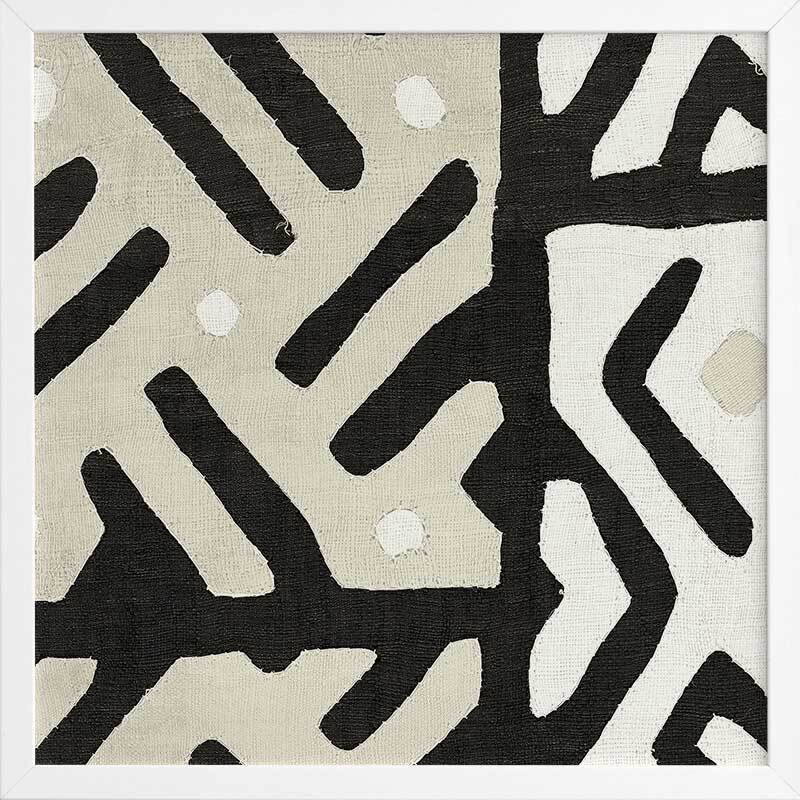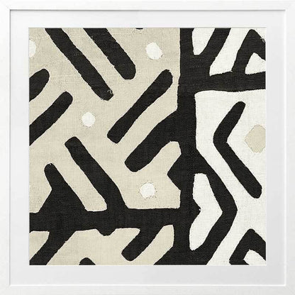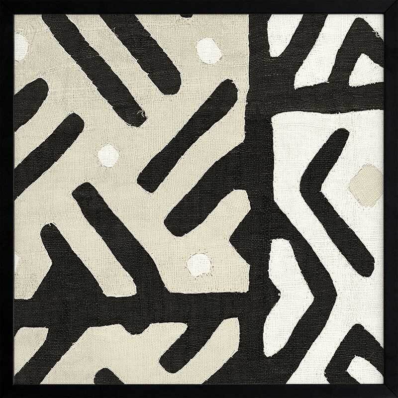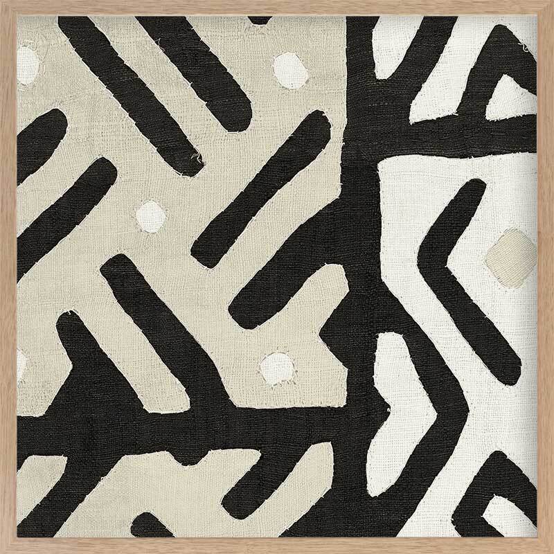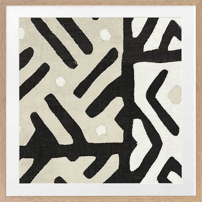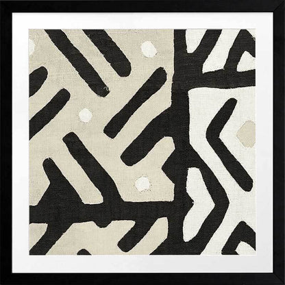 Long Island II Framed Art Print - Reminiscent of an intricate tribal pattern, this abstract artwork features intersecting lines and angles in a carefully balanced monochromatic palette of black, cream and beige. Pairs with Long Island I.