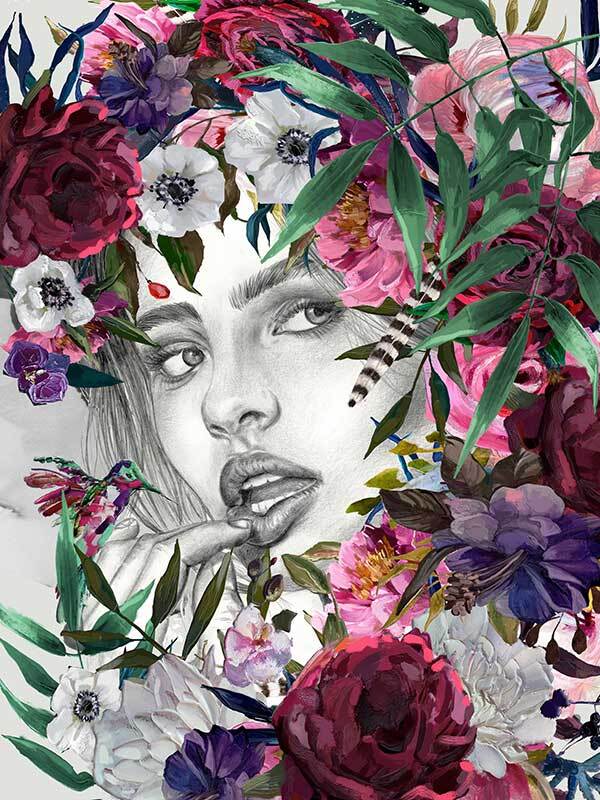 Enter the whimsically creative world of talented illustrator Patricia Mendes with this collection of unique, charming illustrations. Inspired by Parisian fashion and blooming flower imagery, this collection also brings fierce female figures and heart-warming animal portraits to the forefront with detailed sketches and intimate framing. From full greyscale pieces to stunning colour contrasts, you'll connect with the pensive, free-flowing energy carried throughout each piece.
