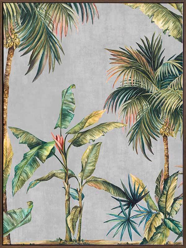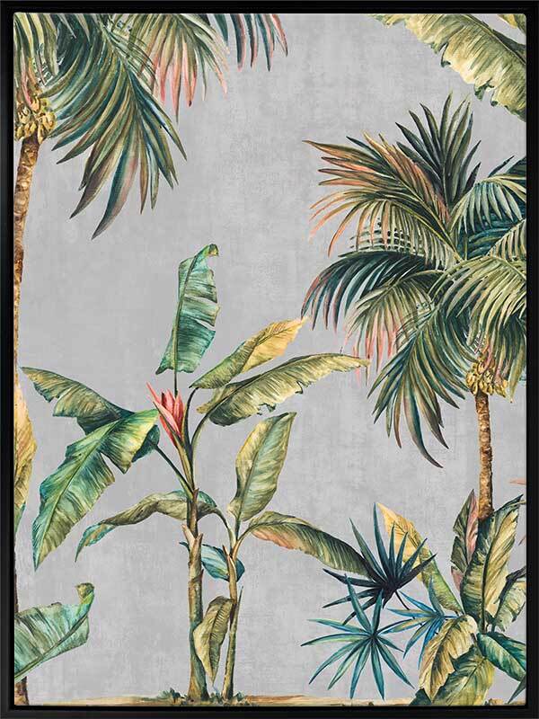 Lush Palms Canvas Art Print - Bring some island vibes to your space with this detailed tropical flora piece. With a primarily cool colour palette featuring blue-green tones, with hints of yellow and pink, this is the perfect addition to any living space or bedroom to create a relaxed environment.