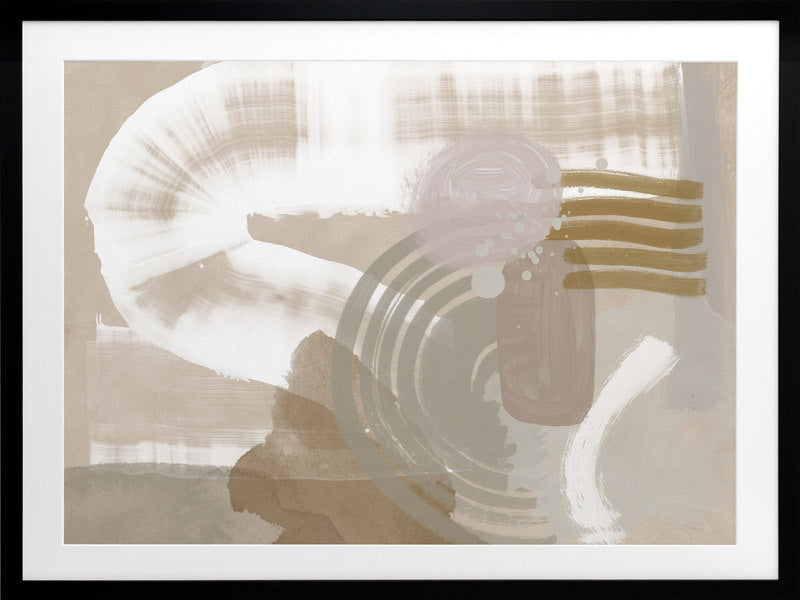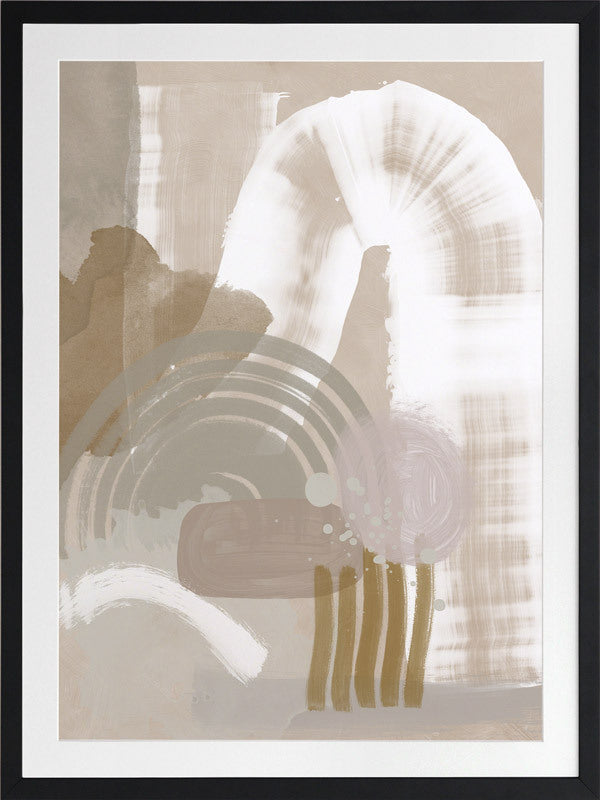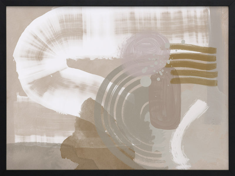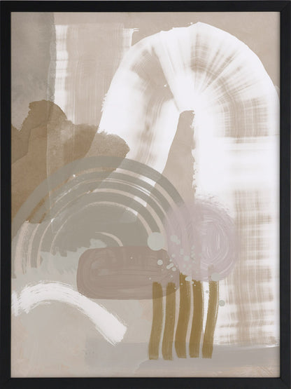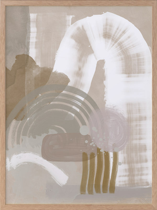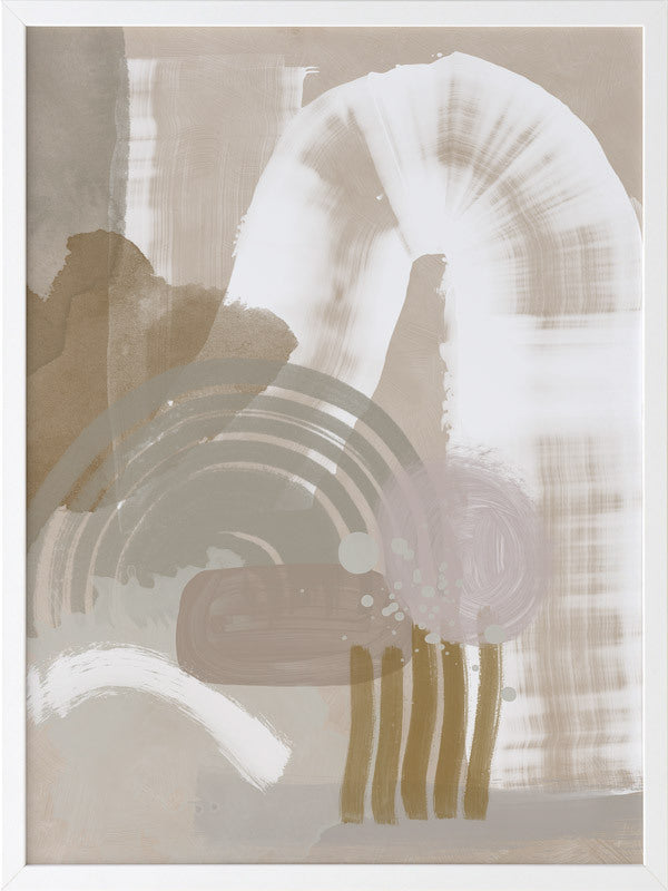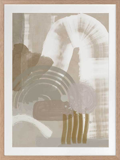 Making Tracks Framed Print: A neutral, textured abstract that features overlapping shapes and strokes in a muted beige, white, sage and pink colour palette. 2019 SPRING/SUMMER COLLECTION: SOLSTICE
