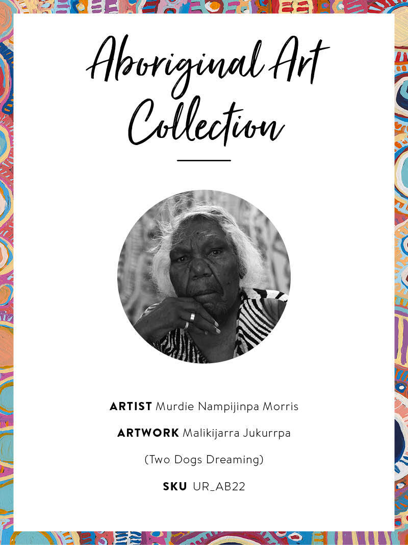 For every Malikijarra Jukurrpa Indigenous Aboriginal artwork sold, a percentage of the sale price goes directly back to the artist.