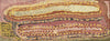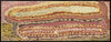 The two dogs separated at Tapu, with the female dog, Napangardi, heading south, and the male dog, Jampijinpa, heading north. Eventually Jampijinpa became lonely, and howled for Napangardi in the south. She came running to him, and they married each other at Ngarnka. They wore men's and women's marriage headdresses, and Jampijinpa painted himself with white clay for the ceremony. After they were married, they continued their journey together, moving slowly to the east, eventually reaching Warlaku (Ali Curung), where many other dogs were living. There were families - mothers, fathers, children and uncles all living together. Jampijinpa and Napangardi made a burrow for themselves to rest in, and started their own big family of dogs, choosing to stay and live amongst the other families in Warlaku.