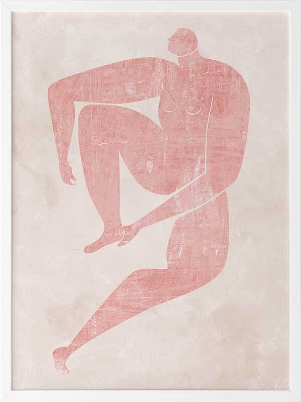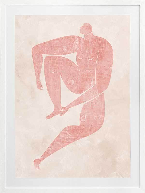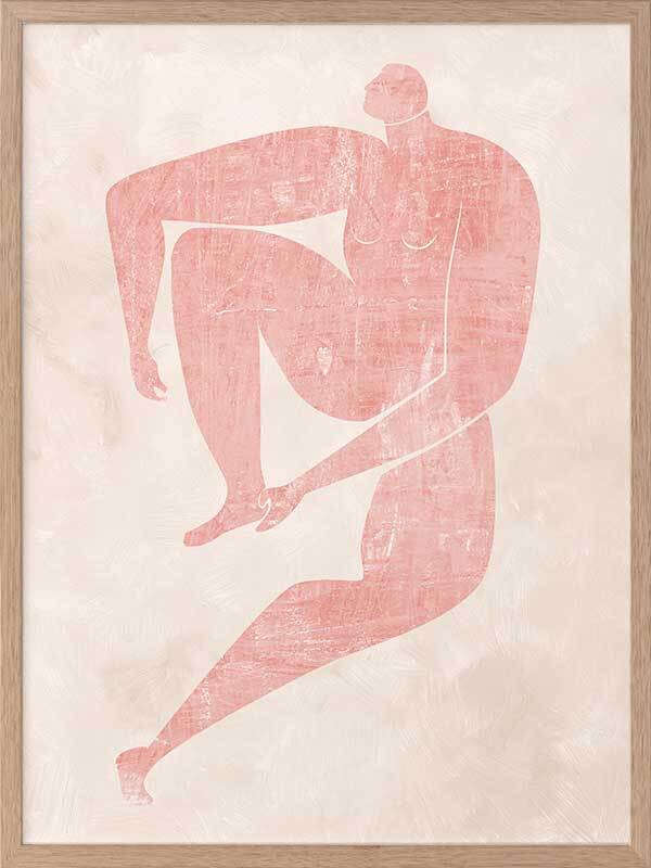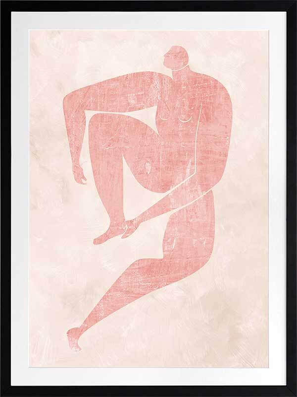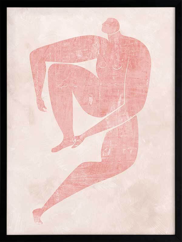 Marguerite Cut-Out I Framed Art Print - Drawing inspiration from the iconic cut-out style artwork from modern art master Matisse, this artwork features a simplistic, caricature-like portrait of a figure with exaggerated limbs. The colour palette is soft and feminine, featuring a blush pink figure against a pale pink textured background. This artwork has been created to match with Marguerite Cut-Out II, III and IV.