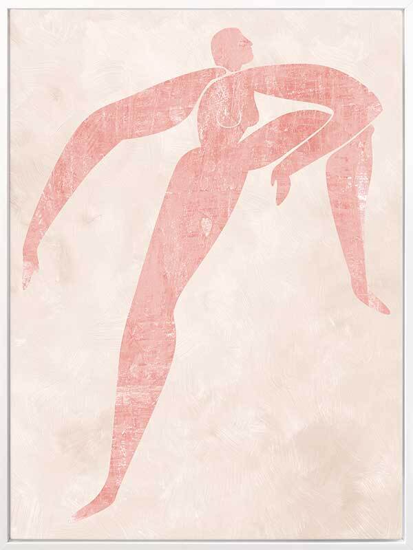 Marguerite Cut-Out II Canvas Art Print - Drawing inspiration from the iconic cut-out style artwork from modern art master Matisse, this artwork features a simplistic, caricature-like portrait of a figure with exaggerated limbs. The colour palette is soft and feminine, featuring a blush pink figure against a pale pink textured background. This artwork has been created to match with Marguerite Cut-Out I, III and IV.