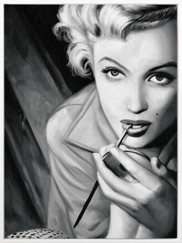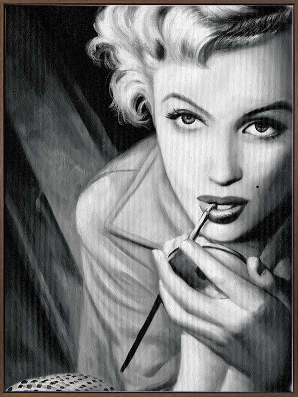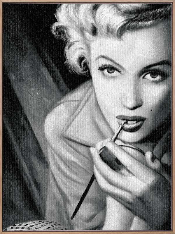 Marilyn Mono - A monochromatic illustration of Marilyn Monroe applying lipstick.
