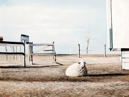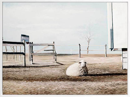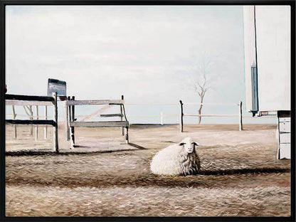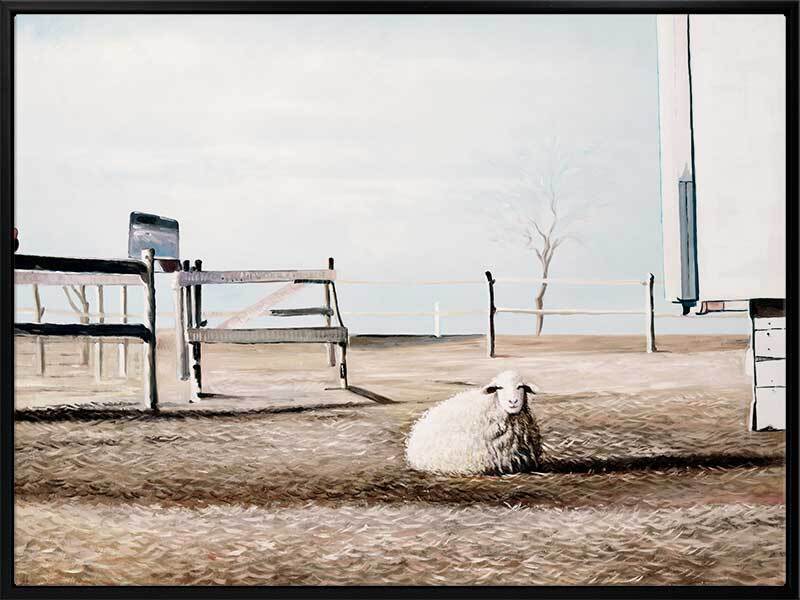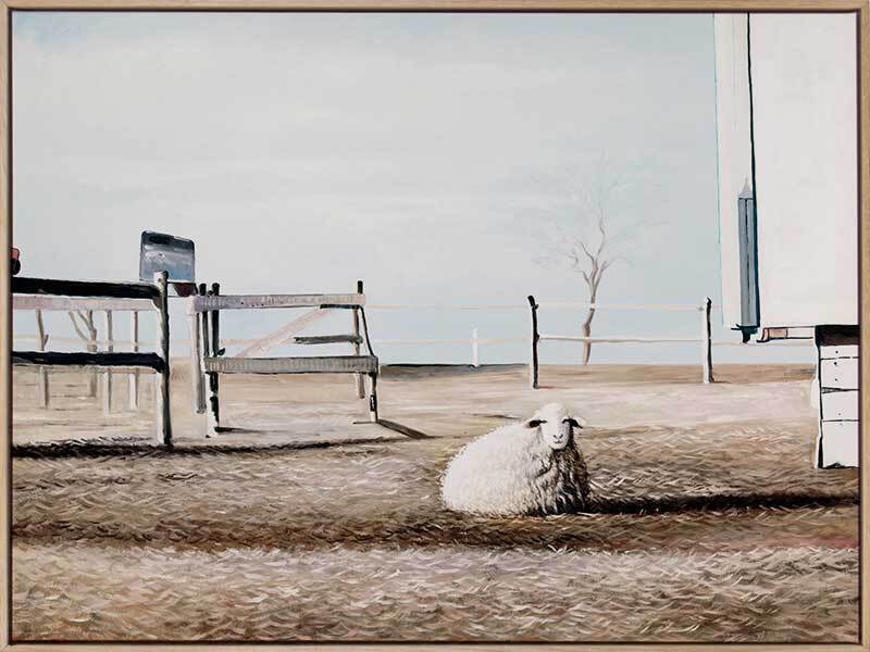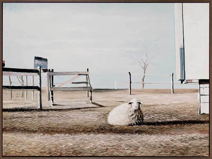Matlida Canvas Art Print: An artwork print of a lone sheep on a quiet, Australian outback farm. 2018 SPRING/SUMMER COLLECTION: REMINISCE