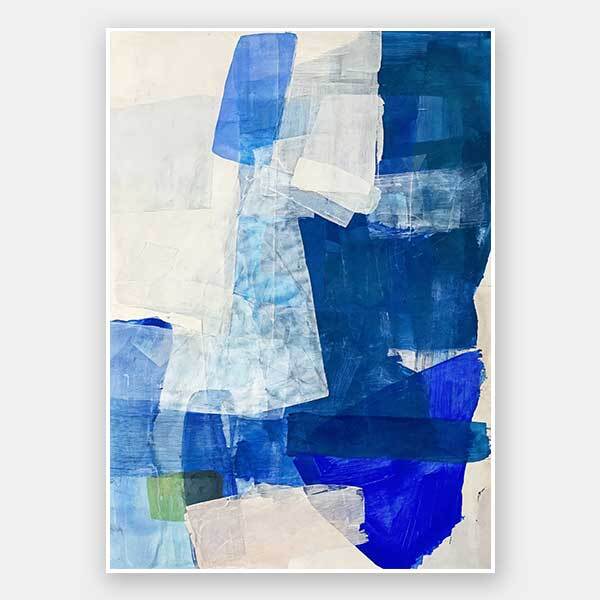 Meditation I Unframed Art Print - Vivid blues and soft whites blend seamlessly in this captivating modern abstract art. The composition's layered shades and translucent textures create a sense of calm and depth. Ideal for adding a splash of colour and modern flair, this abstract art print transforms any space into a serene and sophisticated retreat.