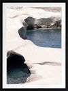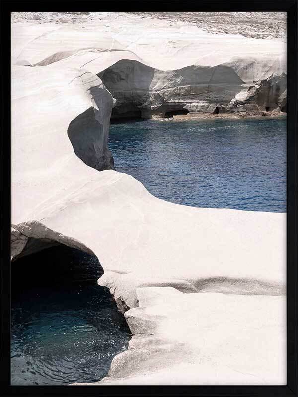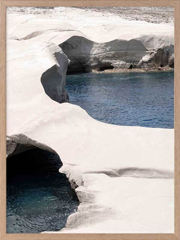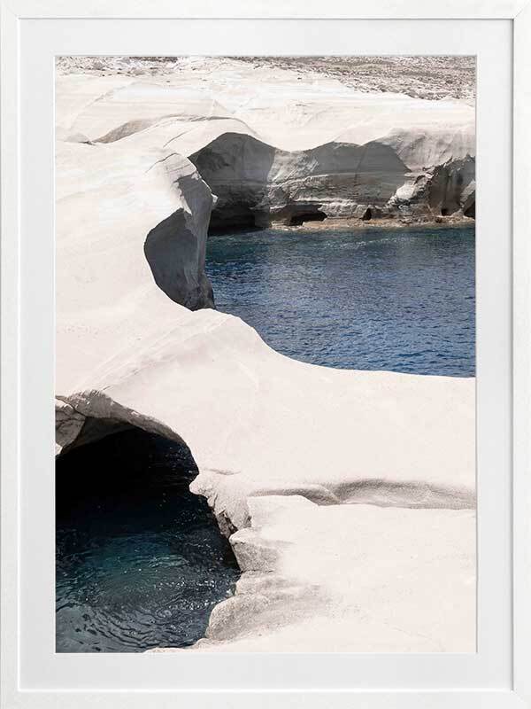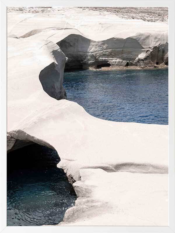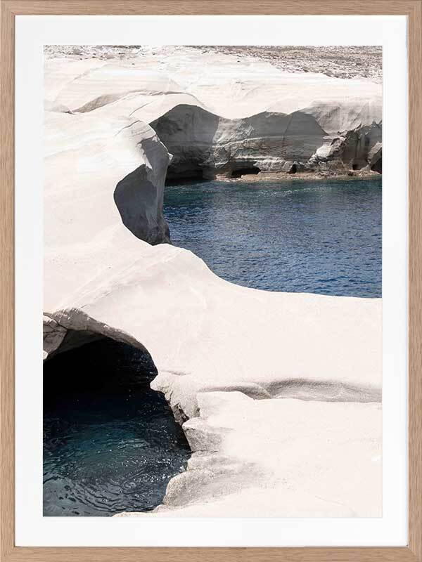 Mediterranean Cove Framed Art Print - This gorgeous landscape photographic art print captures the raw beauty of eroding coastal coves and travels to the coast, with the contrast of the white rock against the blue sea bringing such calm vibes to any space.