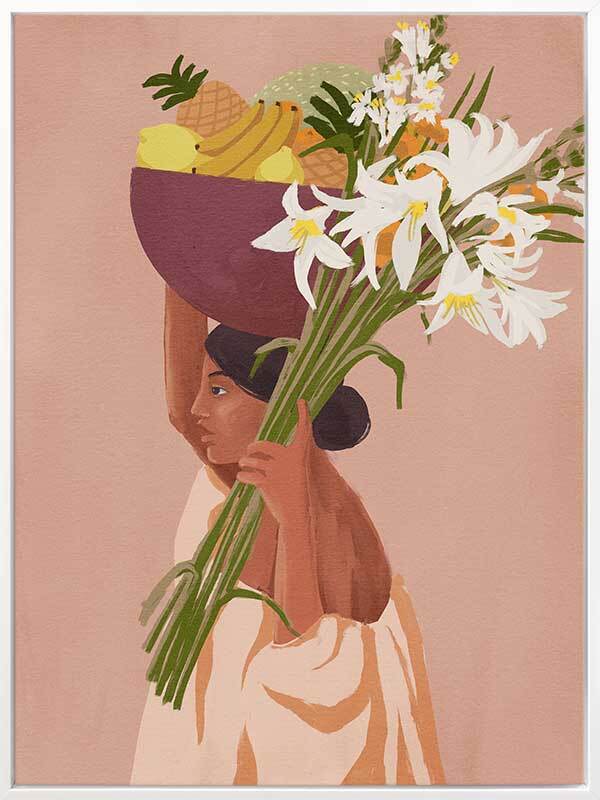 Inspired by everyday life and rich cultures of Latin America, the Bonita Collection celebrates women, their strength and beauty. The vibrancy of their tribal heritage translates here in beautiful headwear and frilled, billowing dresses whilst balancing tropical fruit baskets effortlessly. The colour palette features warm and soft papaya pink, sun kissed banana yellow and tangerine offset by a pop of palm leaf green and sienna red.