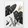 Midnight Tropics I Unframed Art Print - An abstract look at mother nature, this artwork has a textural feel to it with painterly brush strokes and subtle colour blocking in the background, outlining the leaves for greater impact. A monotone palette of black and white is set off by a pop of yellowish-green and cloudy blue.