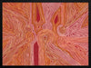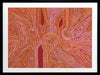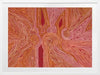 Mina Mina Jukurrpa III Framed Art Print - Six circles sit at the centre of this Indigenous Aboriginal artwork, casting out meticulously painted lines -assembling themselves like a maze of sunrays in a warm colour palette of red, pink, ochre and peach.