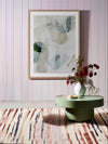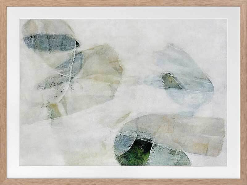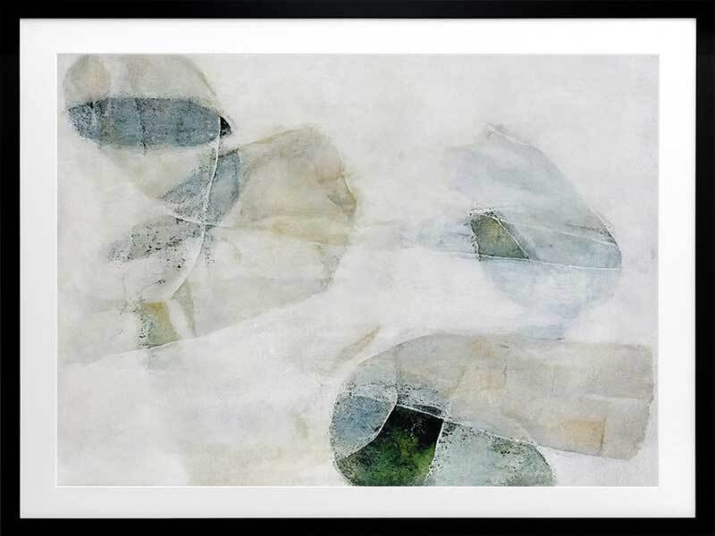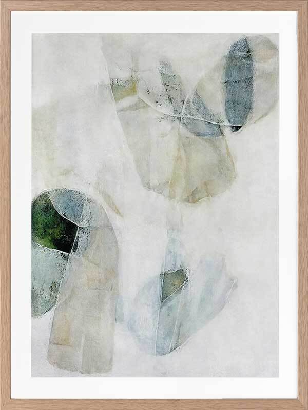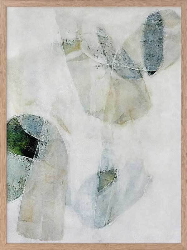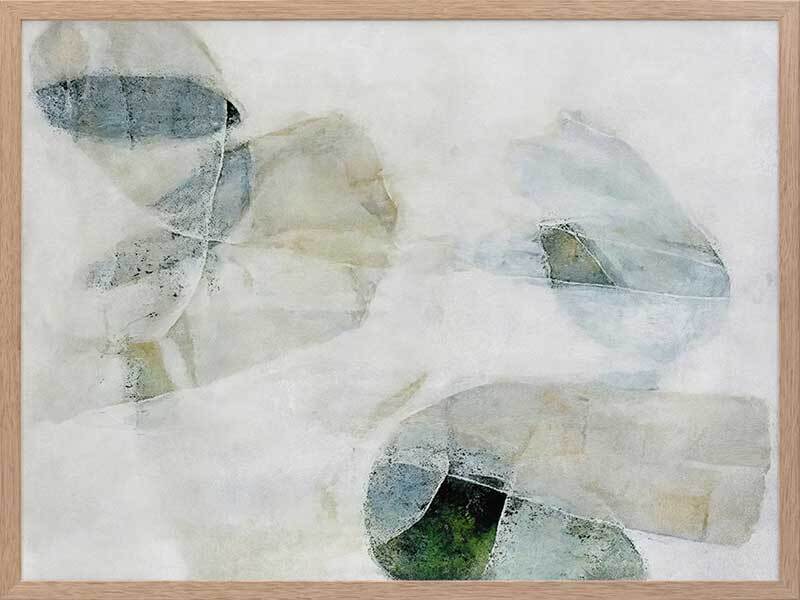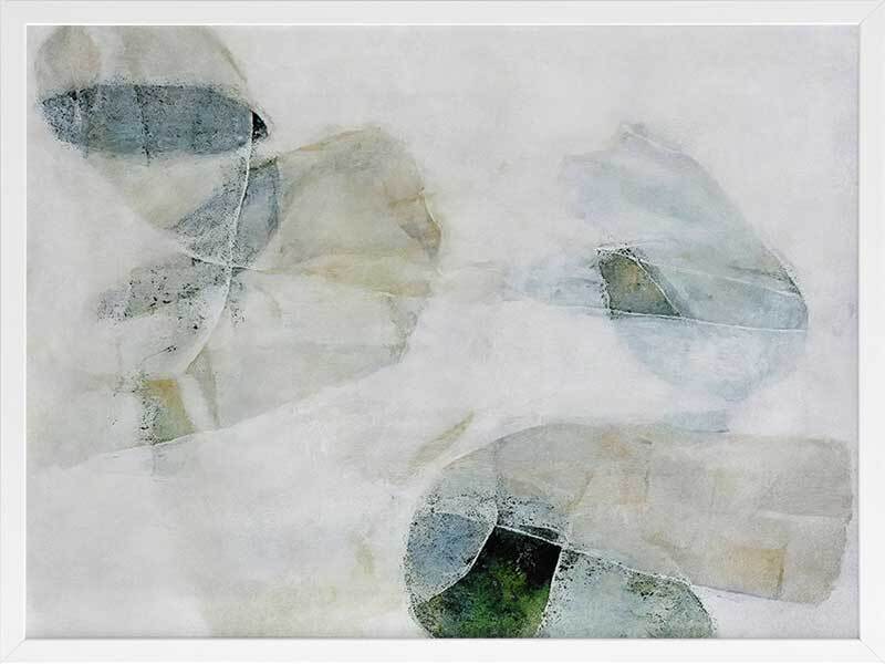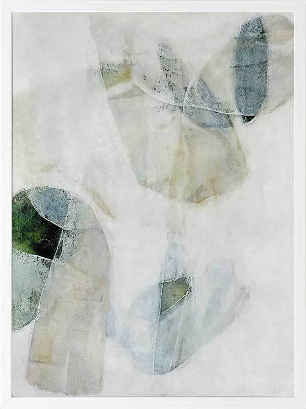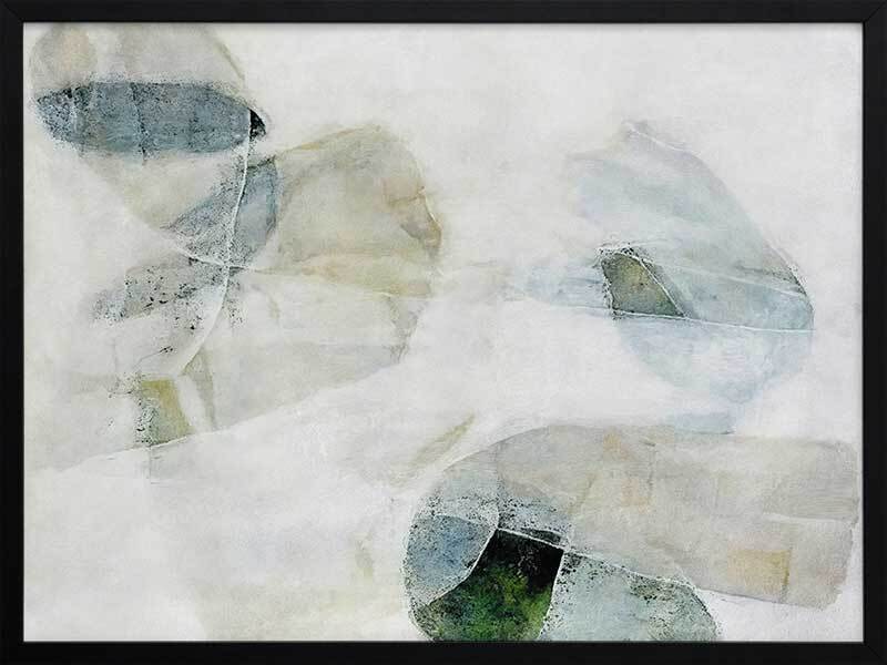 Misty Blues I Framed Art Print - Like looking through a misty veil, this abstract wall art brings transparent brush strokes and random shapes together to create the most perfect living room or bedroom wall art. Palette is soft and calm with shades of blue-green, white, and sand.