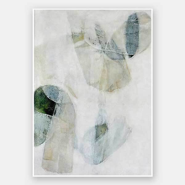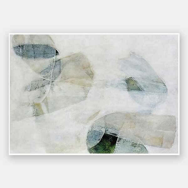 Misty Blues I Unframed Art Print - Like looking through a misty veil, this abstract wall art brings transparent brush strokes and random shapes together to create the most perfect living room or bedroom wall art. Palette is soft and calm with shades of blue-green, white, and sand.