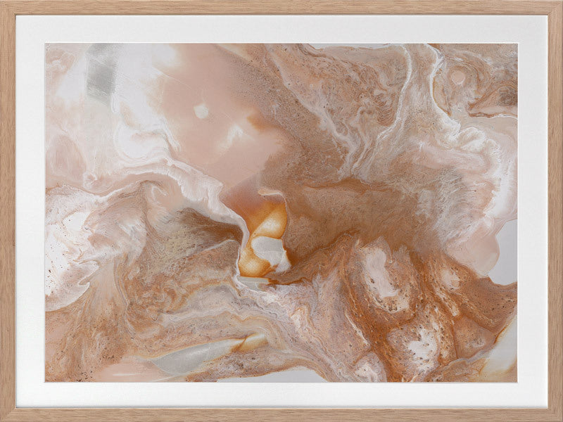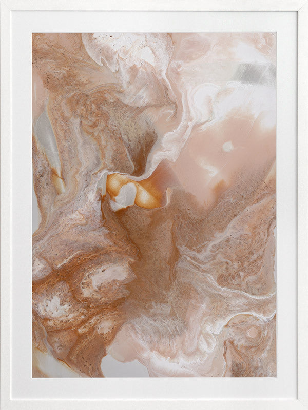 Moab Framed Print: A soft, neutral abstract that features a marbling of warm nude, soft pink and cream tones. 2019 SPRING/SUMMER COLLECTION: SOLSTICE