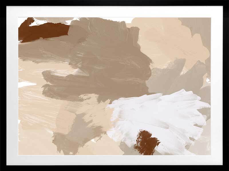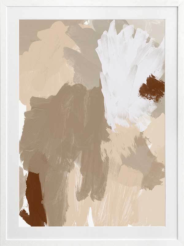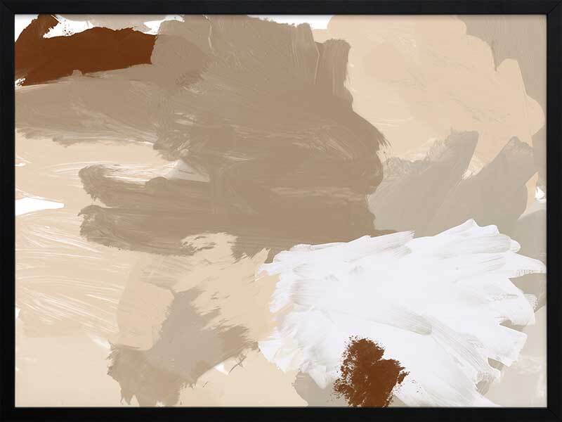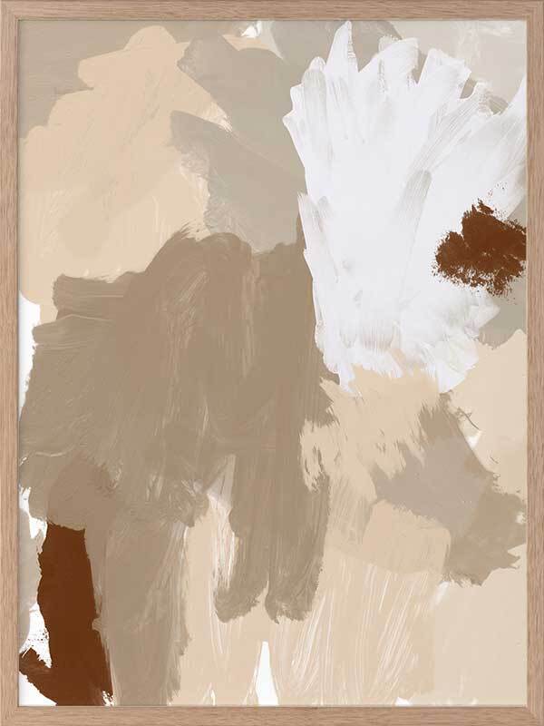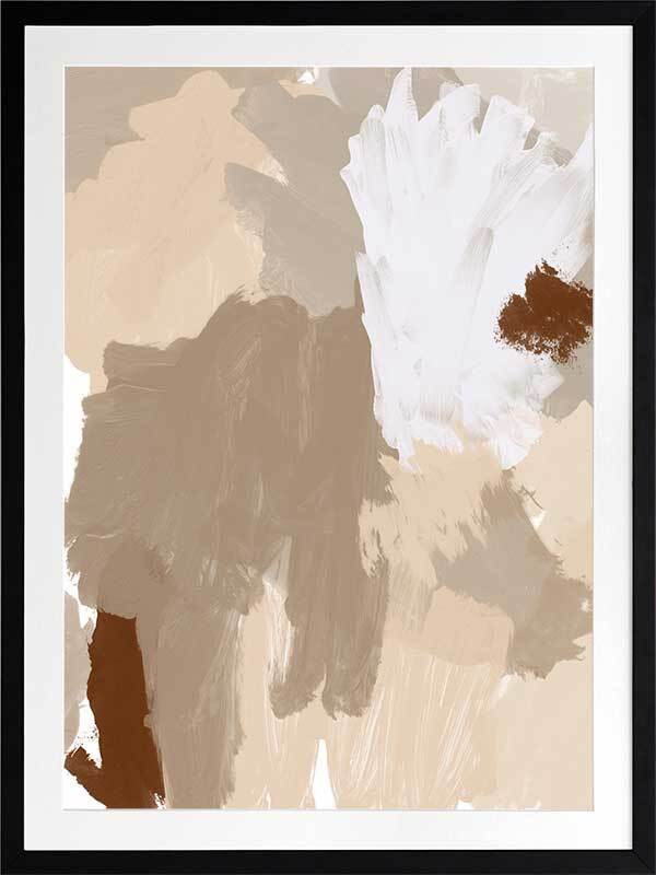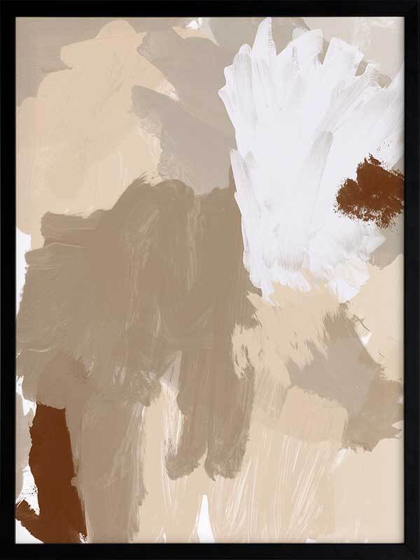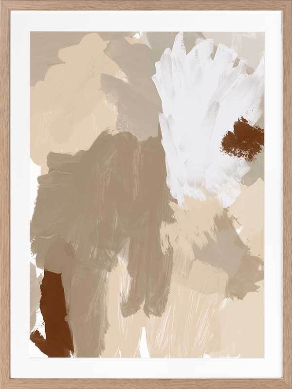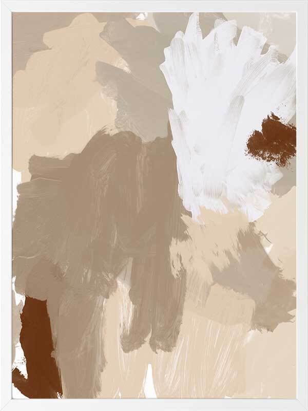 Modest Framed Art Print - Chaotic in its composition, yet calming in its colours, this abstract artwork makes the perfect statement in your space without overpowering other pieces, with visible brush strokes for added texture. A soft colour palette includes neutral tones of beige, brown, and white.
