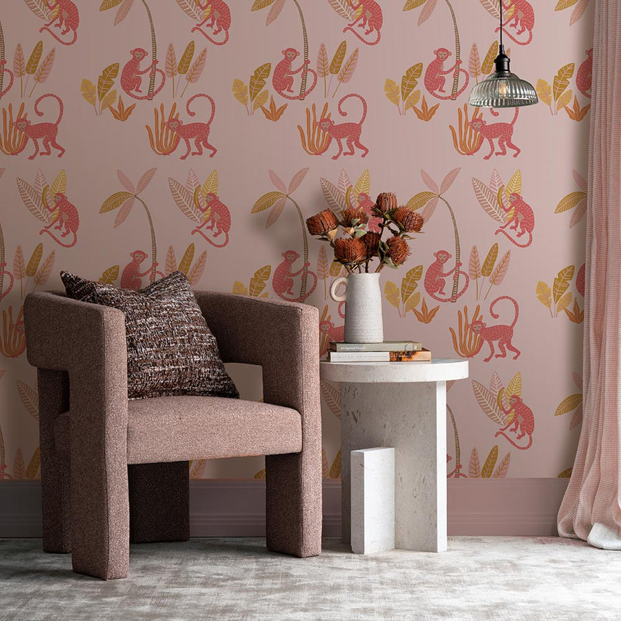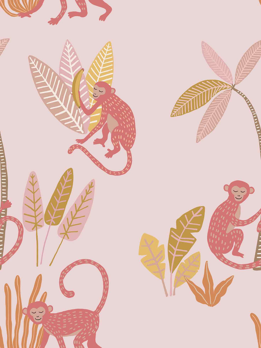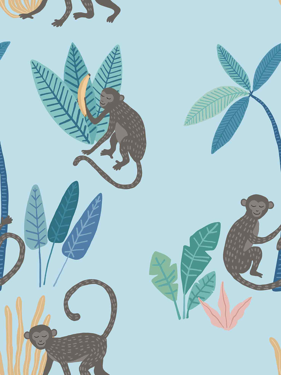 Monkey Mischief Wallpaper - Bring a sense of playful adventure to your space with this cute animal wallpaper, where mischievous monkeys swing, climb, and lounge with bananas and tropical foliage.