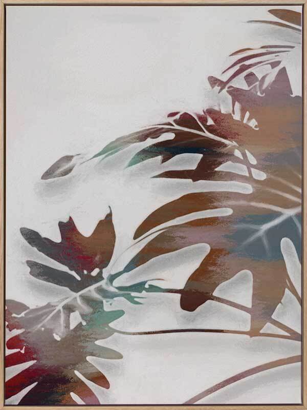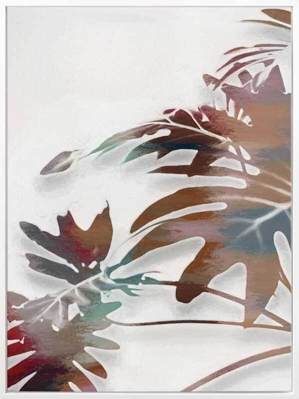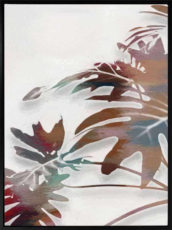 Monstera Major I Canvas Art Print: A moody, tropical inspired artwork featuring a textured burgundy, brown and grey monstera plant on a grey background. Pairs with Monstera Major II. 2019 AUTUMN/WINTER COLLECTION: ODYSSEY