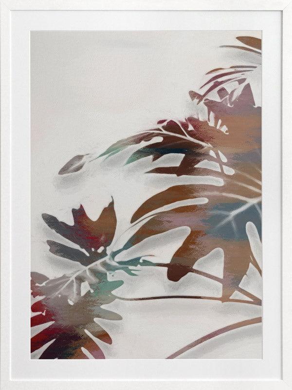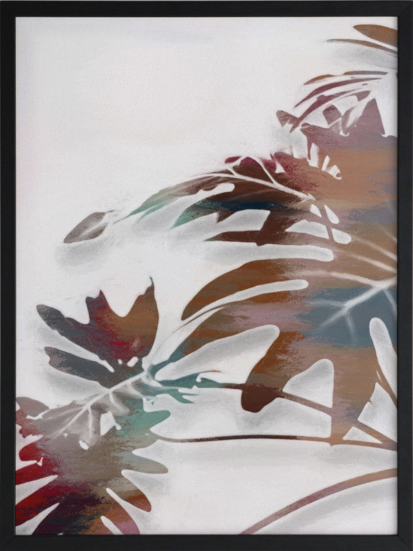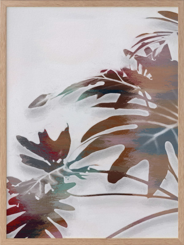 Monstera Major I Framed Print: A moody, tropical inspired artwork featuring a textured burgundy, brown and grey monstera plant on a grey background. Pairs with Monstera Major II. 2019 AUTUMN/WINTER COLLECTION: ODYSSEY