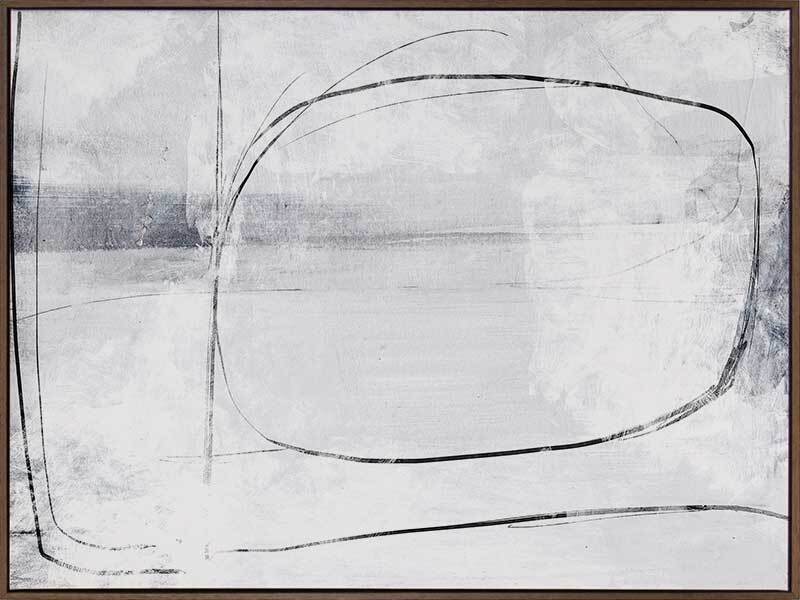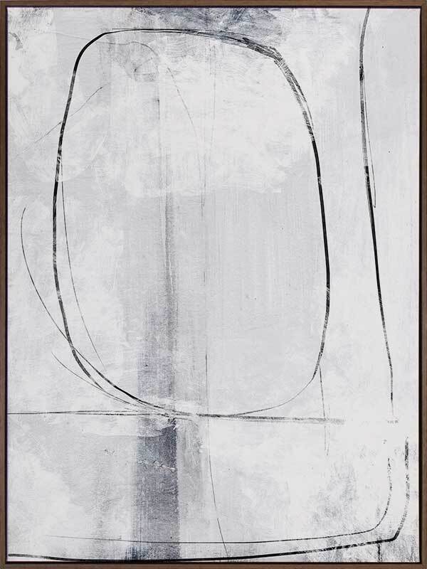 Mood Canvas Art Print - A unique abstract art print with a strong grungy feel, perfect for a monochrome room. Features textures in a muted grey, black and white palette to contrast with the abstract fine line strokes.