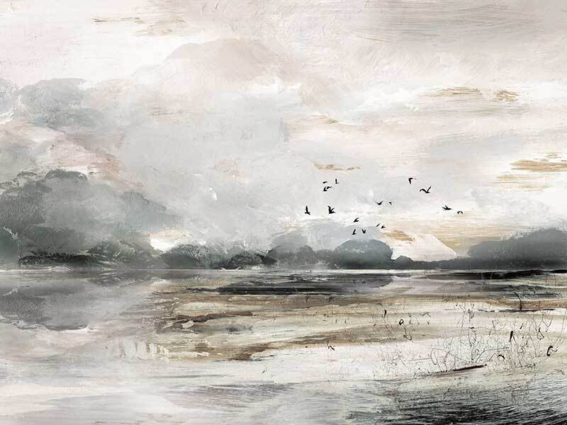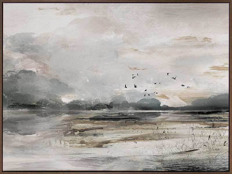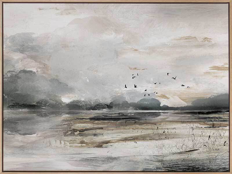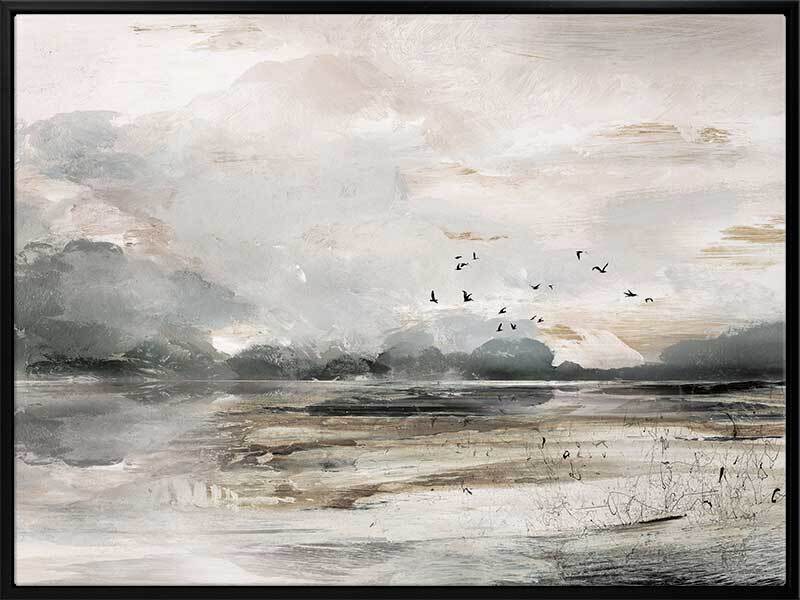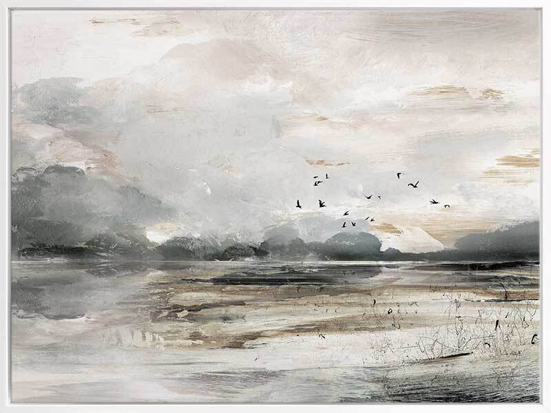 Morning View Canvas Art Print - This moody landscape captures the emotion of shifting weather and light. Featuring a rustic, semi-abstract seascape which has been hand painted using greys, whites, browns and black acrylics before being converted to a print.