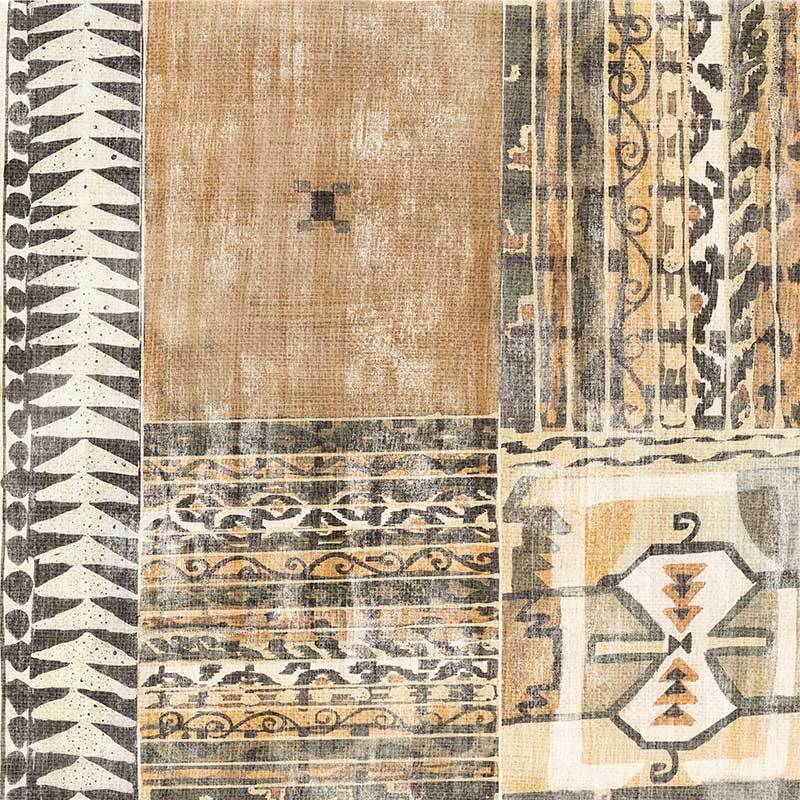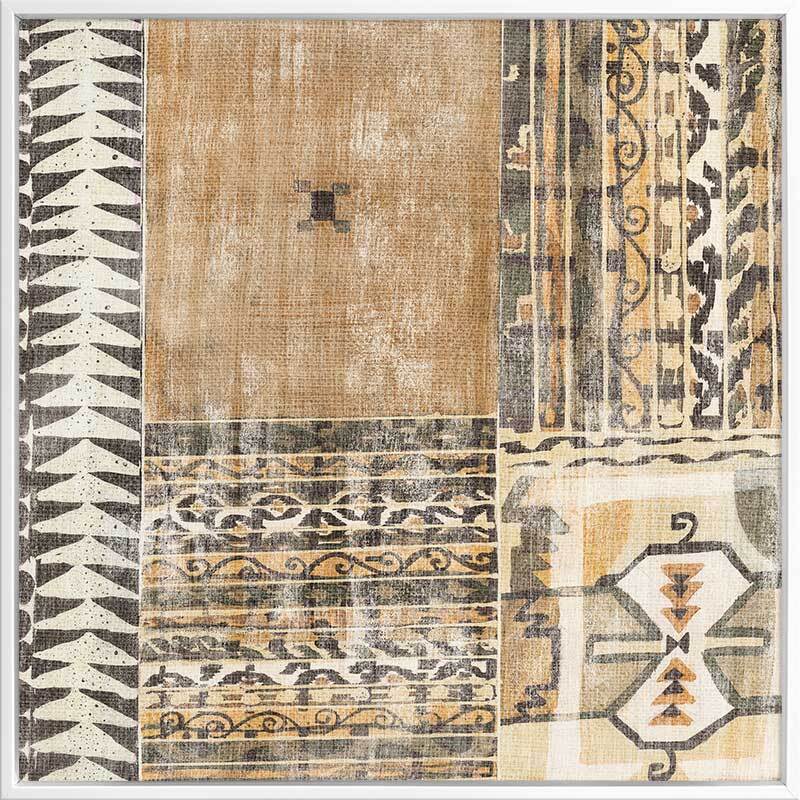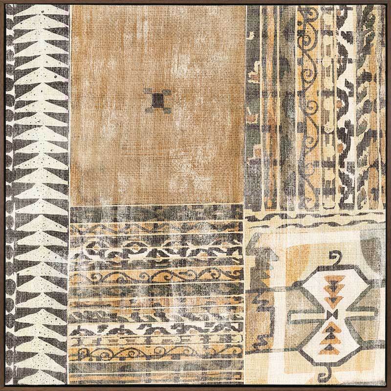 Moroccan Tapestry I Canvas Art Print - Textural, earthy and interesting, this abstract artwork features a patchwork of patterns, shapes and colour blocks in a warm brown, mustard and cream colour palette. Matches with Moroccan Tapestry II and III.