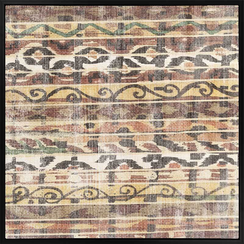 Moroccan Tapestry II Canvas Art Print - Textural, earthy and interesting, this abstract artwork features a patchwork of patterns, shapes and colour blocks in a warm brown, mustard and cream colour palette. Matches with Moroccan Tapestry I and III.