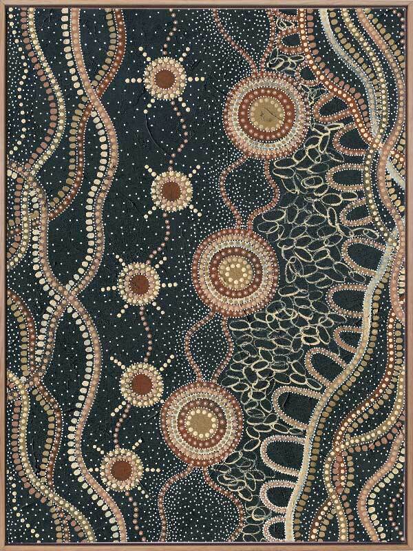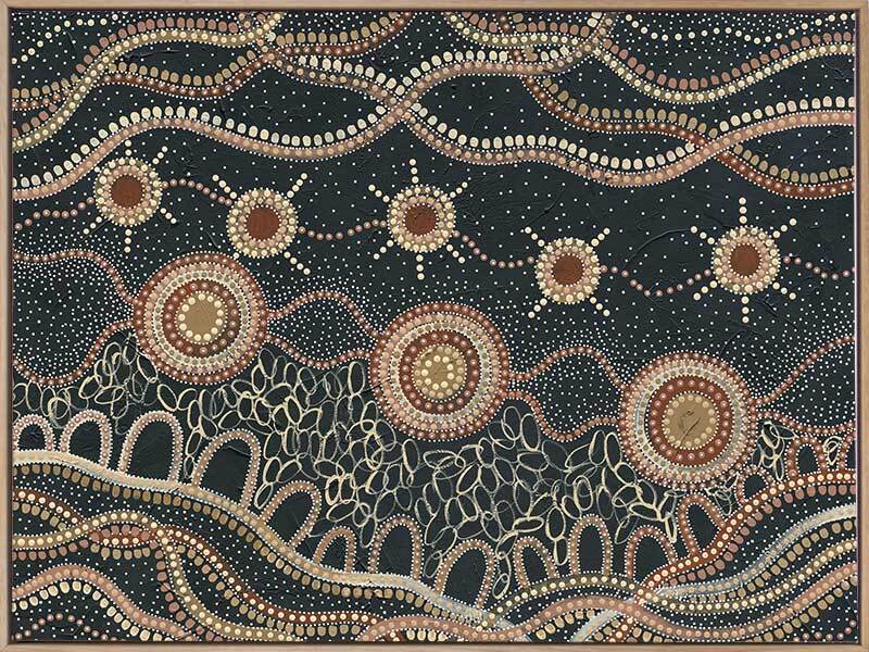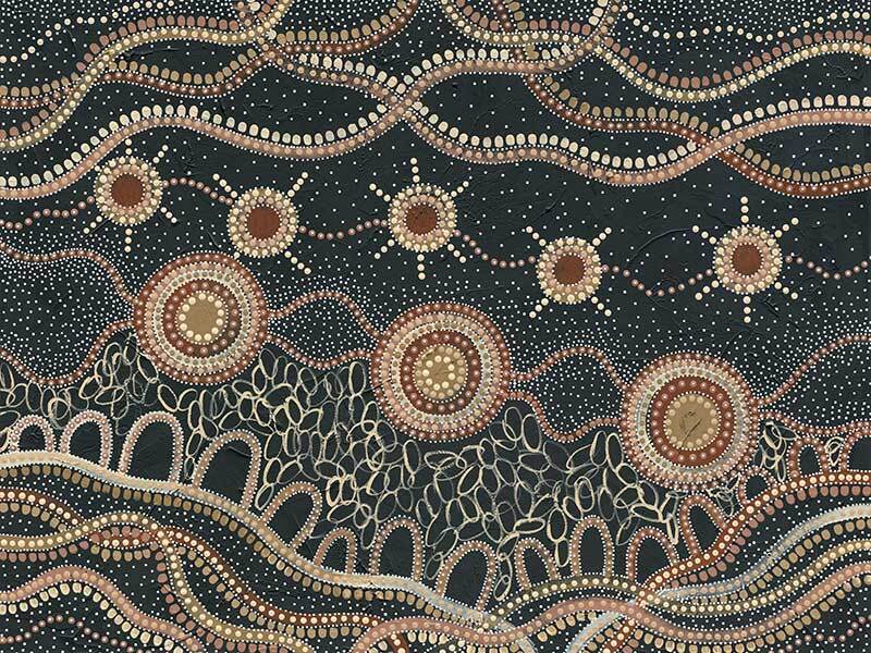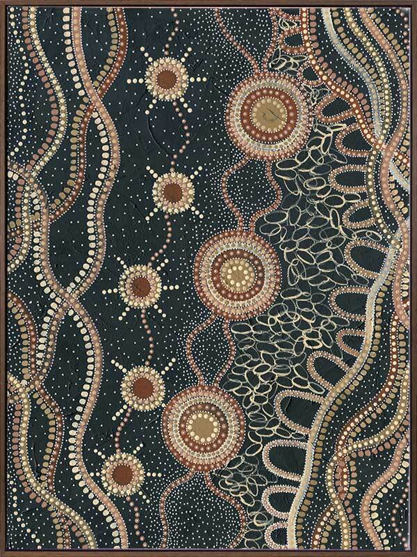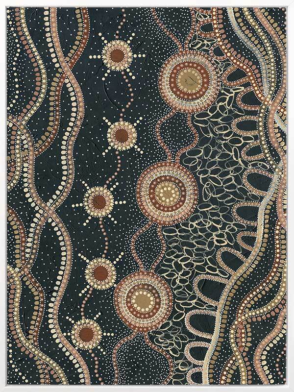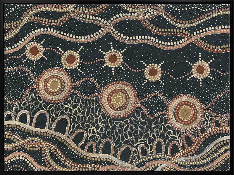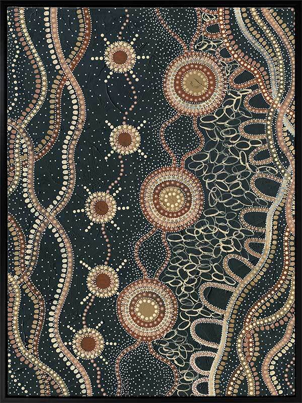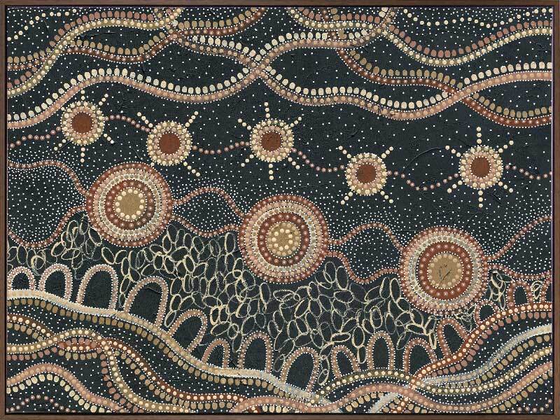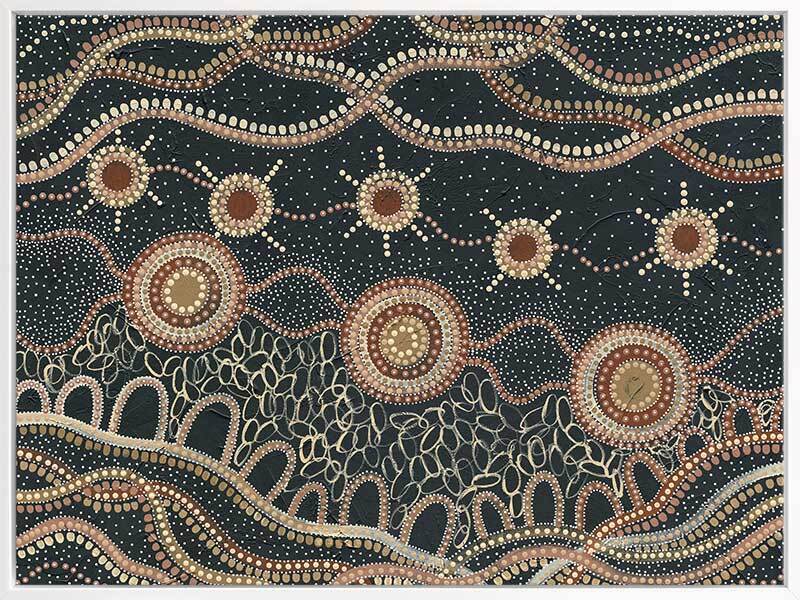 Do you take time to stop and watch the stars? Murriyang represents evenings spent on Country with the artist's family, taking time to sit and watch the stars that shine overhead.