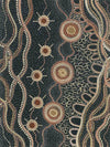 Murriyang Deep Blue Canvas Art Print - Murriyang - "Sky World, Where Biyaami, the Great Creator Lives". A truly magical piece featuring a beautiful blend of shapes, lines and dots, resulting in a unique composition that adds a sense of depth to your space. Colour palette includes a deep blue-green backdrop, bringing forward pops of burnt orange and yellow tones.