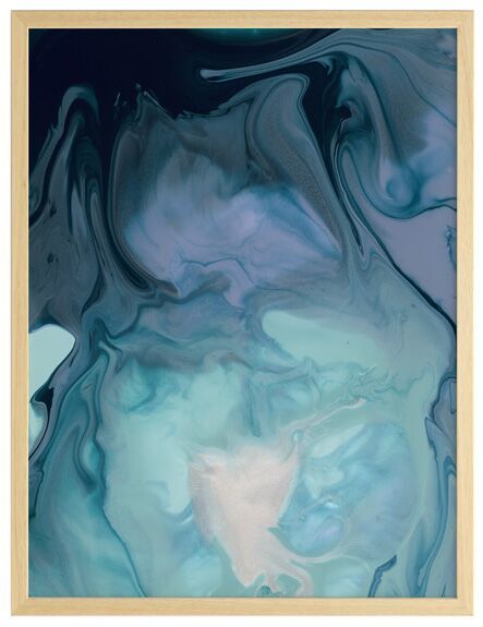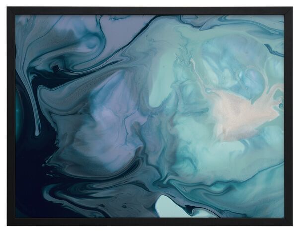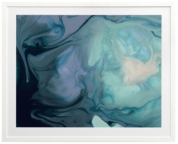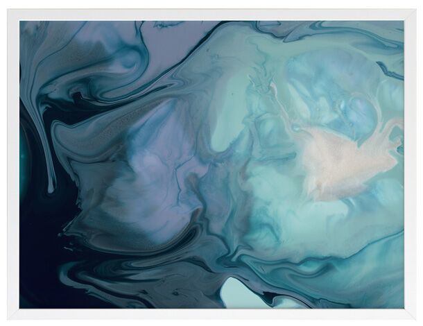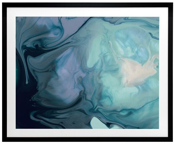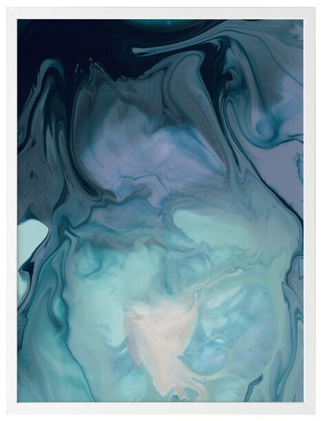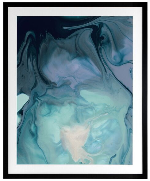 Mykonos Framed Print: A stunning abstract piece featuring marbled teal, white, and indigo tones - reminscent of a swirling seascape. 2017 SPRING/SUMMER COLLECTION: RHAPSODY