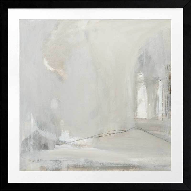 Mystery Smoke Framed Art Print - Grey mist and that feeling of a storm brewing"... This evocative piece uses free-spirited brush strokes and layers of foggy grey to evoke the feeling of entering a room mysteriously thick with smoke, forcing you to slow down and watch the drama unfold.