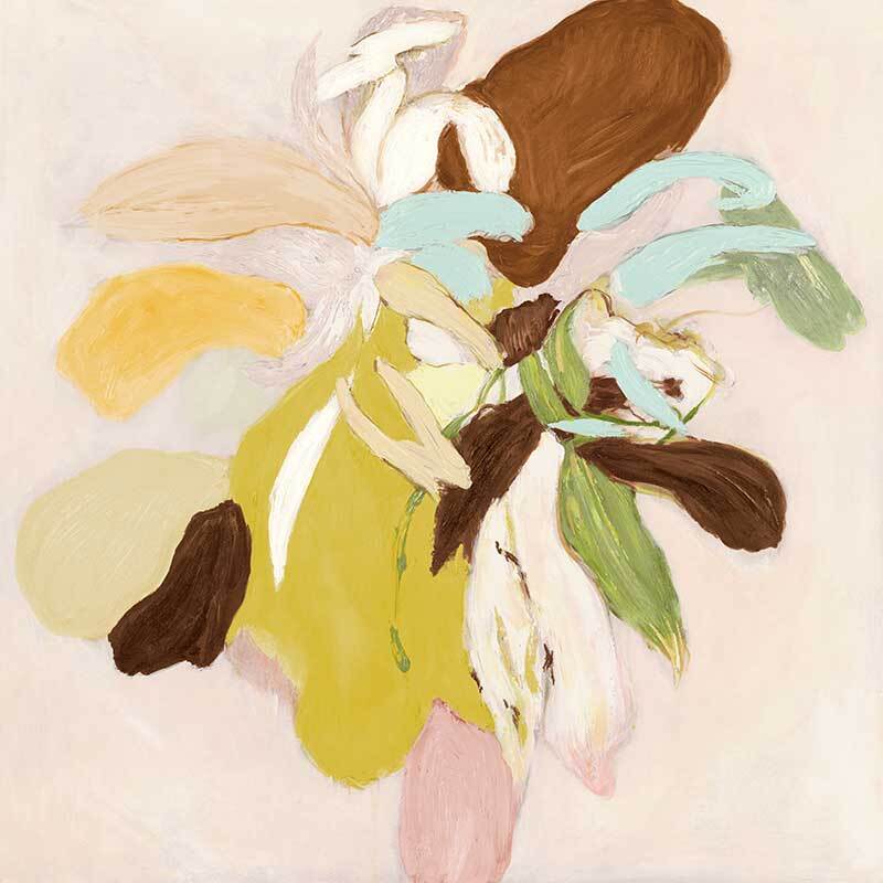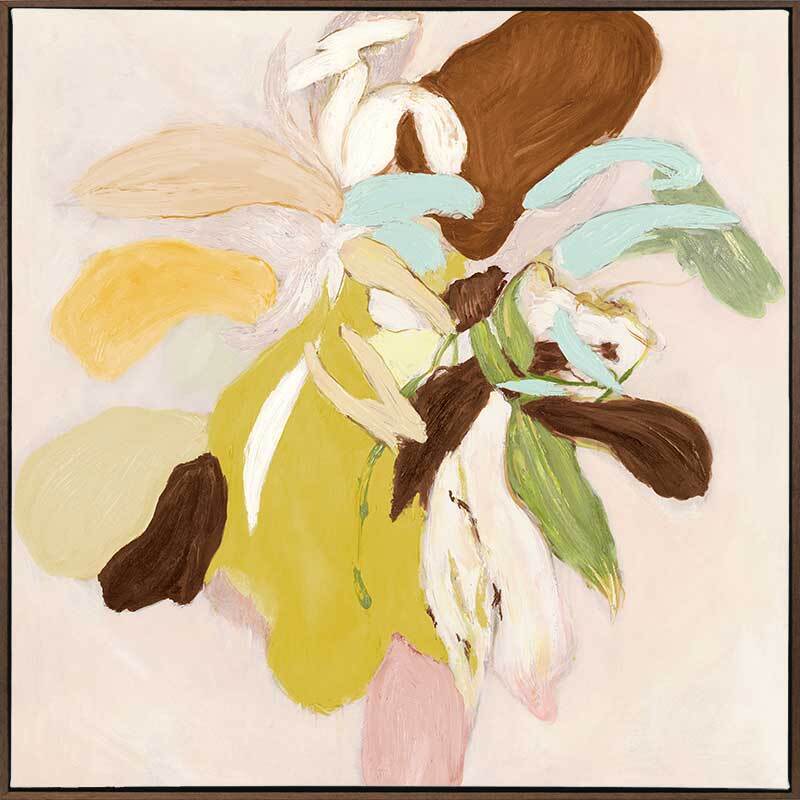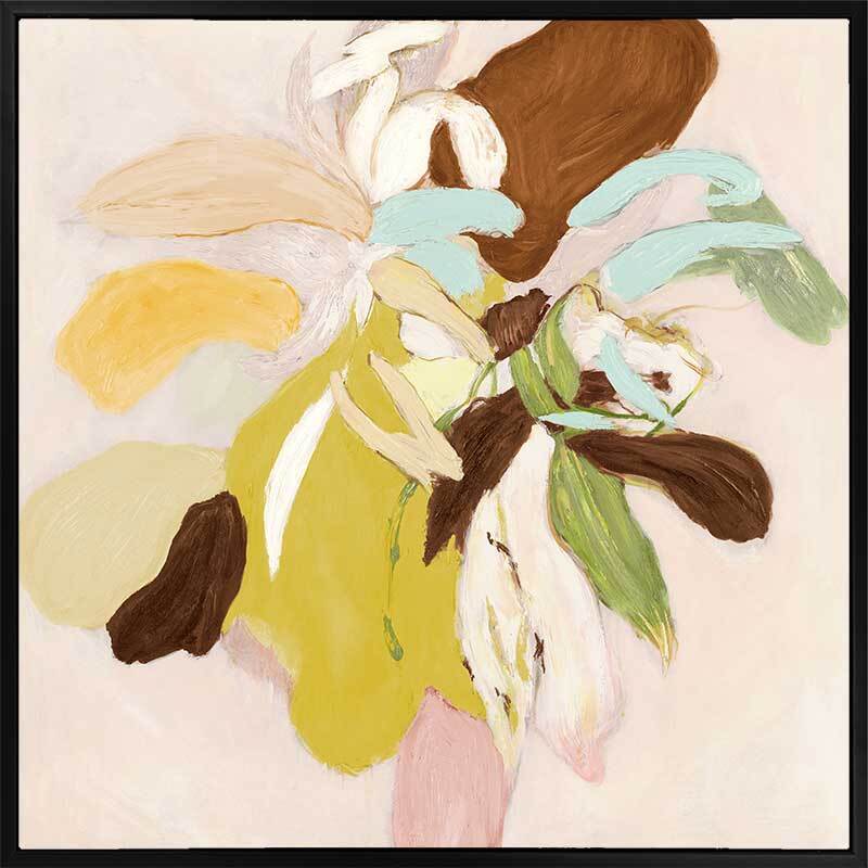 Native Grace Canvas Art Print - This bold artwork blends the alluring essence of visible brushstrokes and colour blocking to bring a calm, painterly feel to your home. "Native Grace" designed by famous Interior Designer, Darren Palmer, portrays the infinite beauty and elegance of the Banksia, a native Australian flower. Featuring a symphony of soft, muted tones including brown, yellow, green, blue, and pink, this piece represents a unique, abstract take on Australian flora, reflecting the charm and beauty of this iconic plant.