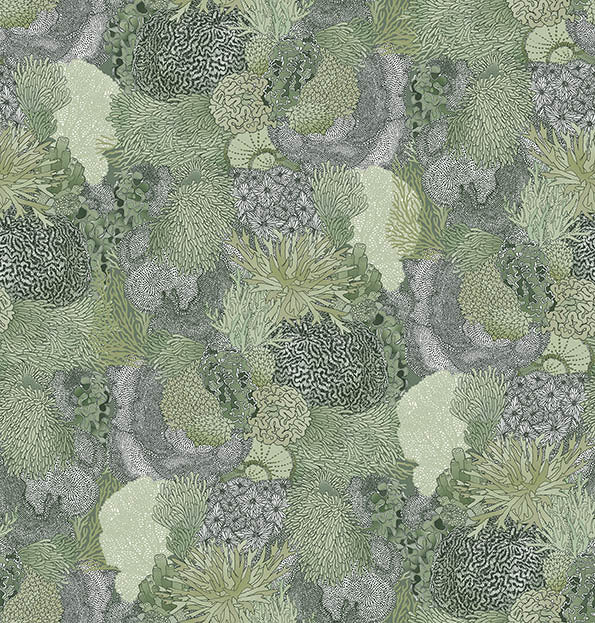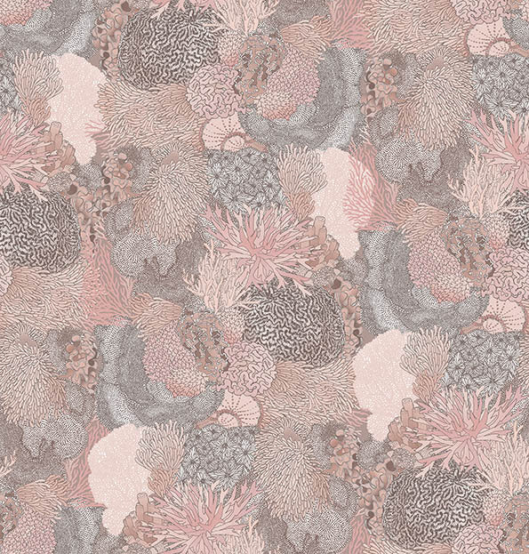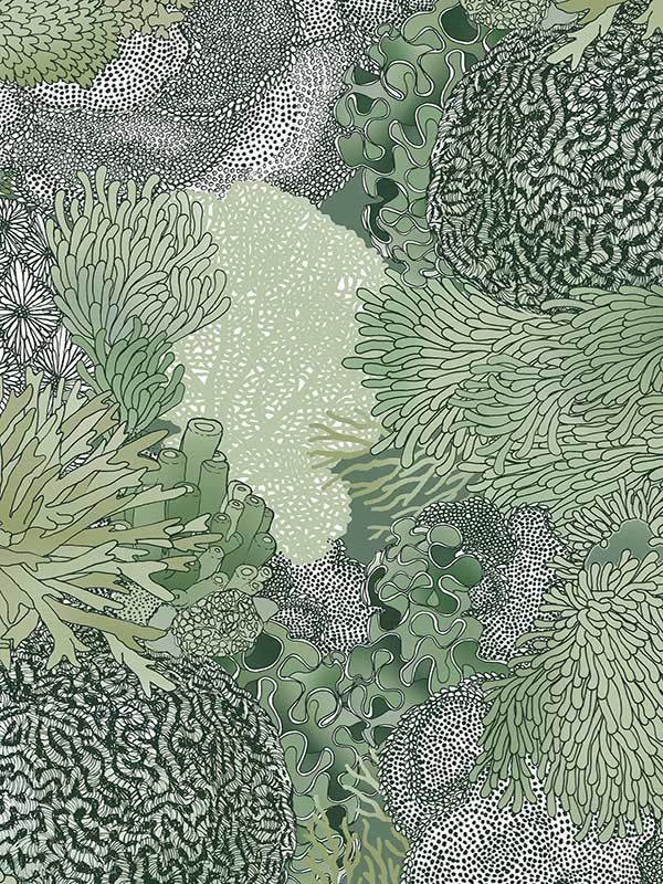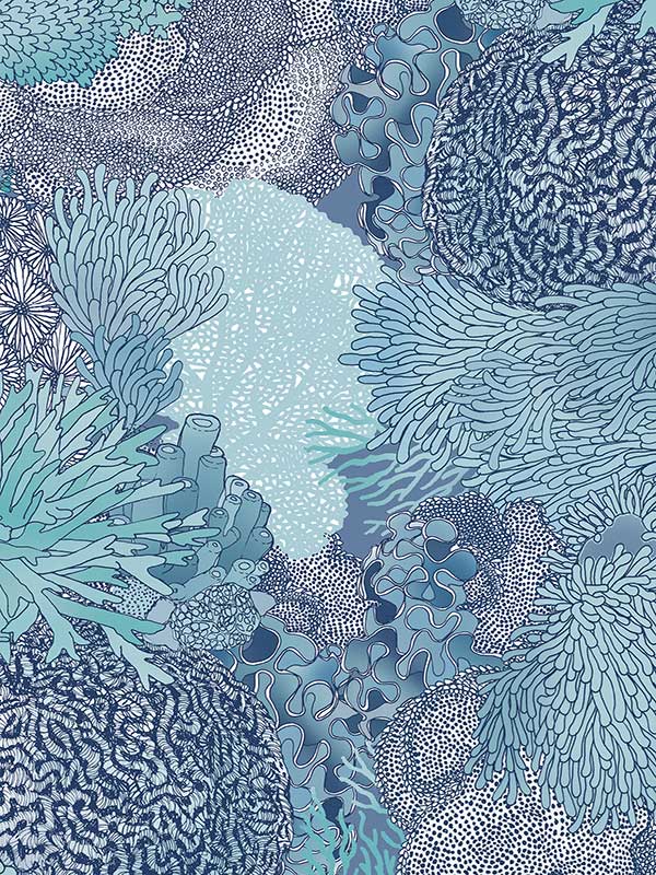 Natural Wonder Wallpaper - Perfect as a statement wall for eccentric and boho interiors, or in a child's bedroom or playroom, this captivating wallpaper design takes you under the sea to marvel at its wonders. Featuring intricate linework, this intimate view of a coral reef gives a soothing feel. Choose from blues, muted blues, greens, muted pinks, pink and orange pinks.