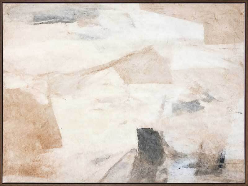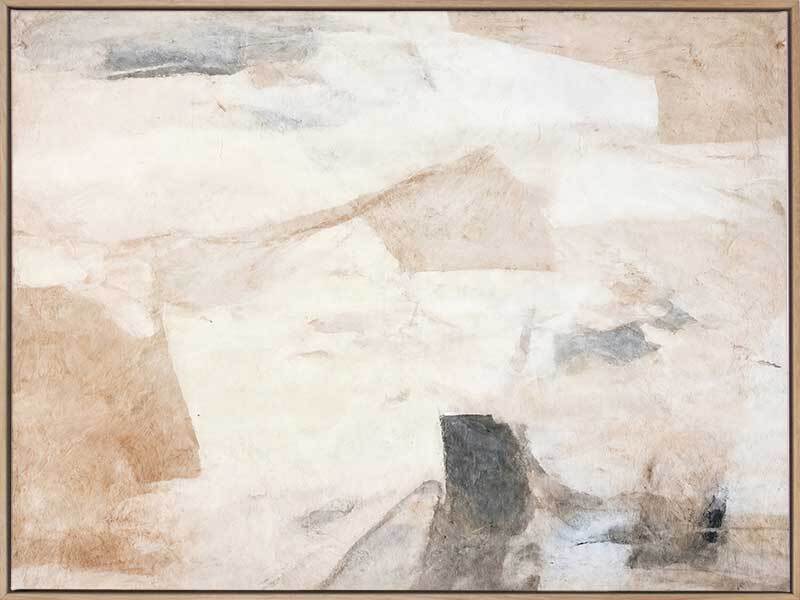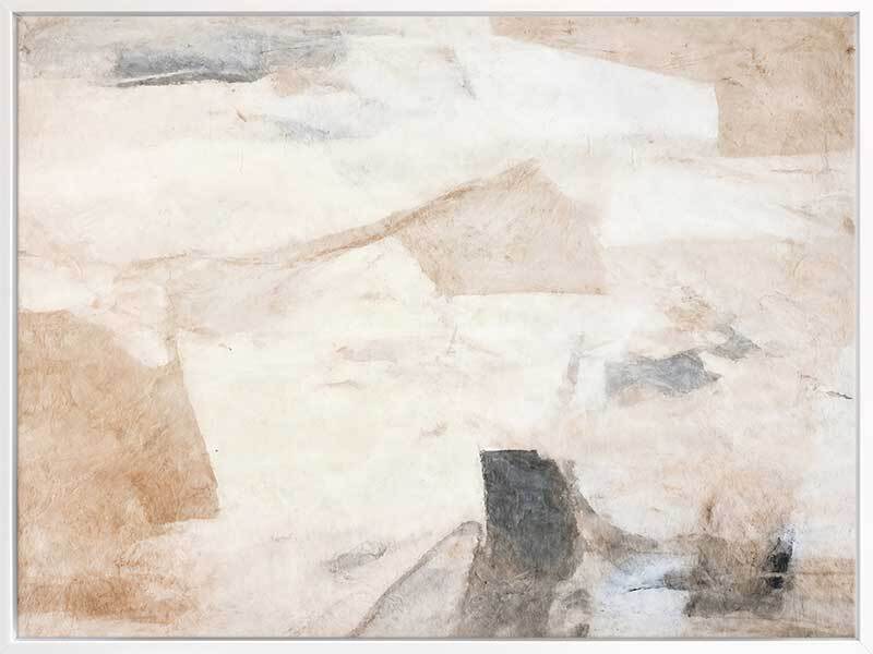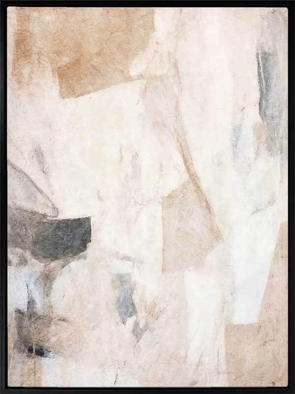 Nature's Fragments I Canvas Art Print - This abstract artwork emits a calming vibe with soft, ethereal blending, contrasted by a collage of interlocking shapes. Perfect for your next bedroom artwork as an abstract artwork, this piece has a versatile palette of neutrals including beige and black.