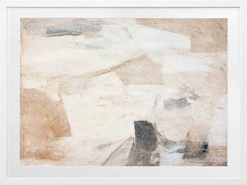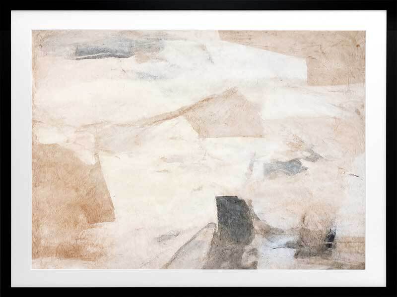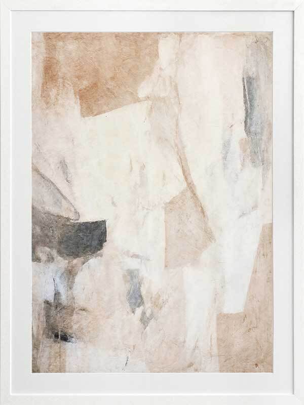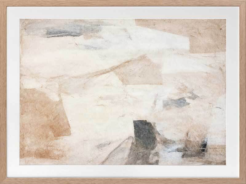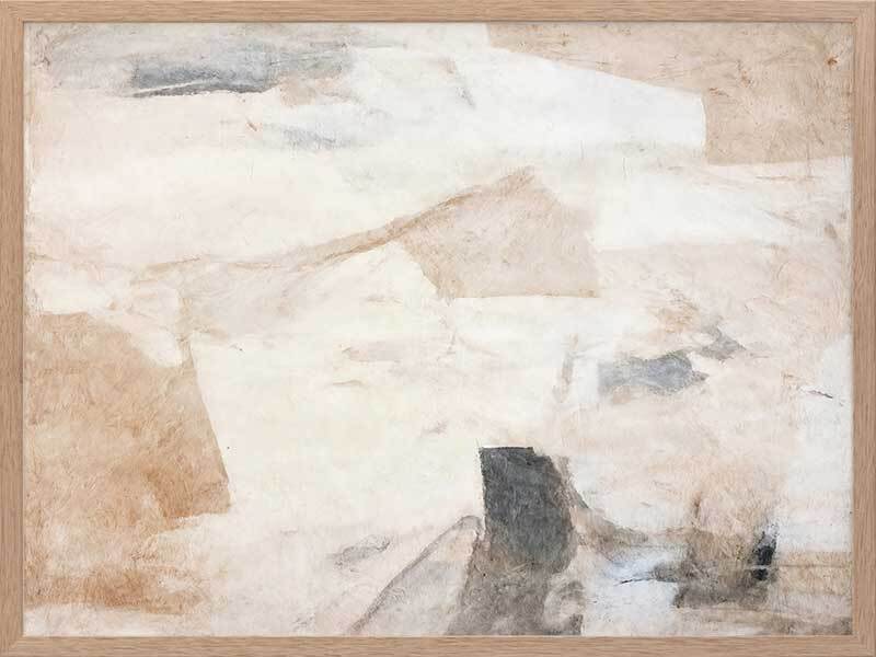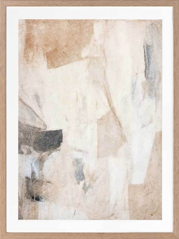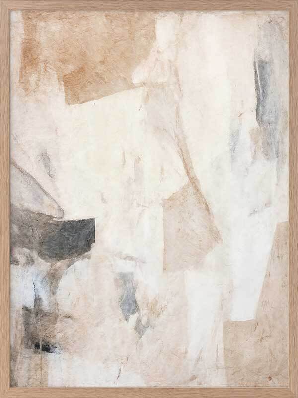 Nature's Fragments I Framed Art Print - This abstract artwork emits a calming vibe with soft, ethereal blending, contrasted by a collage of interlocking shapes. Perfect for your next bedroom artwork as an abstract artwork, this piece has a versatile palette of neutrals including beige and black.