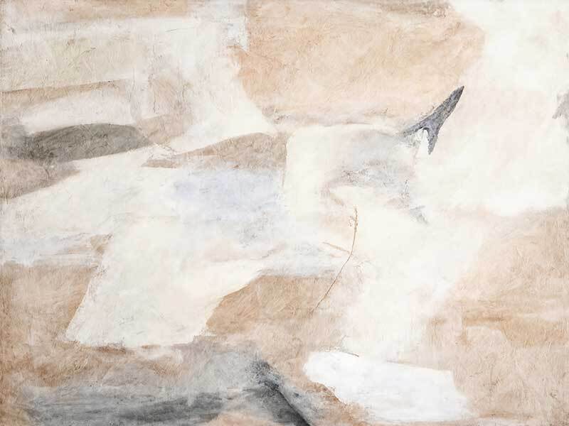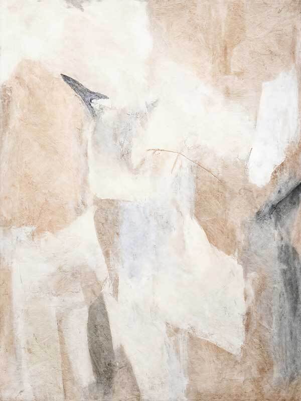 Nature's Fragments II Canvas Art Print - This abstract artwork emits a calming vibe with soft, ethereal blending, contrasted by a collage of interlocking shapes. Perfect for your next bedroom artwork as an abstract artwork, this piece has a versatile palette of neutrals including beige and black.