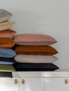 Navy Blue Boucle Cushion 80x40cm - Cool, dark blue-grey velvet paired with a deep navy blue boucle, beautifully finished with blue-grey velvet piping. The Navy Blue Boucle Cushion is an 80x40cm long lumbar cushion, with a double-sided, multi-textural finish allowing you to switch between a silky velvet fabric on one side, and a soft boucle on the other. The cushions come with a 50% microfibre and 50% feather insert, and a hidden zipper for added comfort and style.