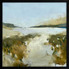New Beginnings Framed Art Print - Capturing the tranquil essence of coastal art with a contemporary touch, this painting uses broad, sweeping strokes in a palette of beige, light blue, and green, to create a beach scene, where the horizon dips into the calm sea. This piece makes ideal bedroom art for those seeking a restful ambience or a contemplative piece of living room art that anchors the room with its quiet, expansive presence.