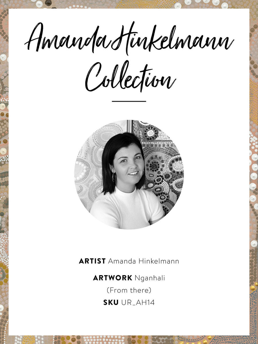 Nganhali Canvas Art Print - Light, earthy and deeply grounded in rich ancestral culture, this contemporary Indigenous Aboriginal artwork has been created by Wiradjuri artist Amanda Hinkelmann. Featuring clusters of intricately painted concentric circles, surrounding three hill like structures, the piece is representative of the Creation period - where all life came into being. The colour palette features a warm midtone colour palette of mustard, ochre, clay and white. A complimentary piece to Dharrang, Marramarra and Wiraywinhangin Marramarra, as a part of Amanda's visual representation of the Dreaming.